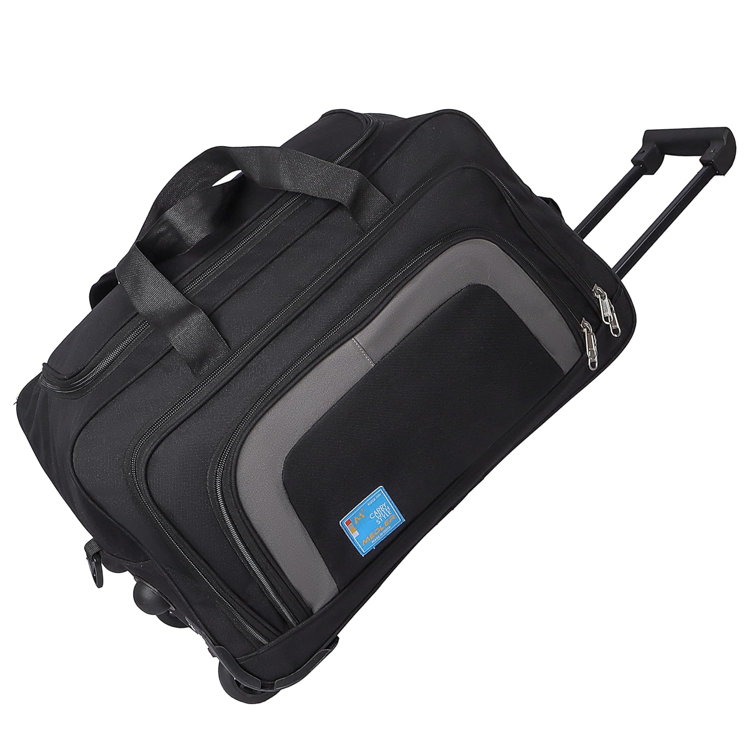 It is constructed using polyester, a durable and water-resistant material. This ensures that the contents of the bag remain protected from moisture during travel or adverse weather conditions. Number of Wheels: 2, Number of Carts: 3; Laptop Compatibility: No, Strap Type: Adjustable