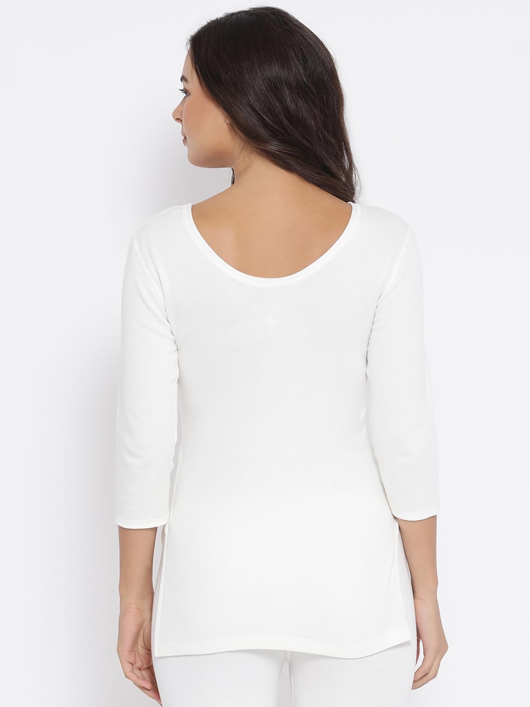 Stay warm and effortlessly stylish with the Macrowoman W-Series 3/4th Sleeve Top, a thoughtfully designed thermal upper for women that brings together warmth, softness, and breathability. Made from a double-layer knit of poly-viscose-cotton fabric, this thermal top creates an insulating buffer that keeps heat close to your body. The ultra-soft cotton interior soothes the skin, while the moisture control feature helps maintain freshness during all-day wear. With its adorable 3/4 sleeves, this top is perfect for wearing under winter outfits or as a standalone piece at home. An ideal choice for women who look for functionality with a touch of elegance in their thermal apparel for extreme cold.