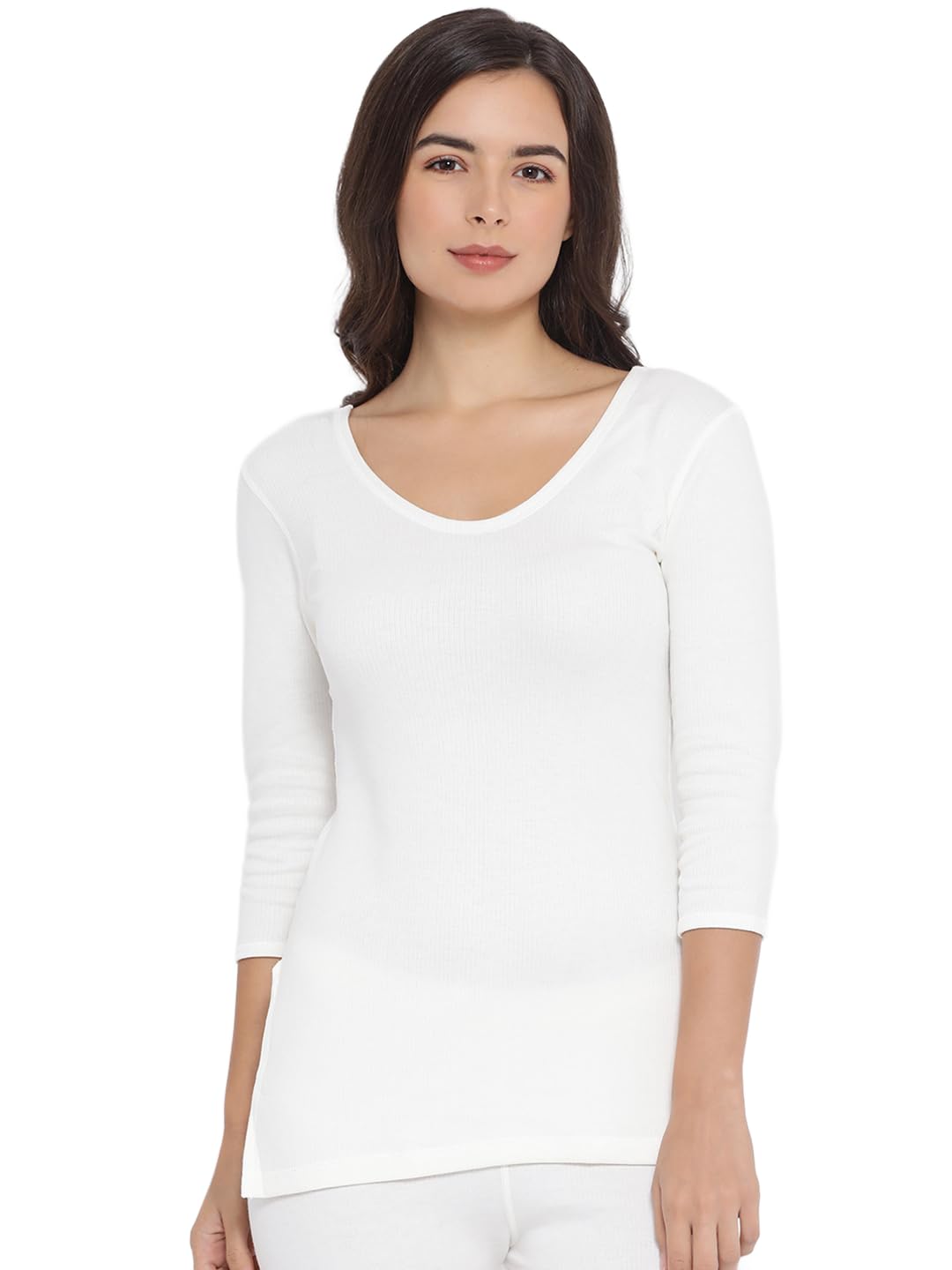 Stay warm and effortlessly stylish with the Macrowoman W-Series 3/4th Sleeve Top, a thoughtfully designed thermal upper for women that brings together warmth, softness, and breathability. Made from a double-layer knit of poly-viscose-cotton fabric, this thermal top creates an insulating buffer that keeps heat close to your body. The ultra-soft cotton interior soothes the skin, while the moisture control feature helps maintain freshness during all-day wear. With its adorable 3/4 sleeves, this top is perfect for wearing under winter outfits or as a standalone piece at home. An ideal choice for women who look for functionality with a touch of elegance in their thermal apparel for extreme cold.