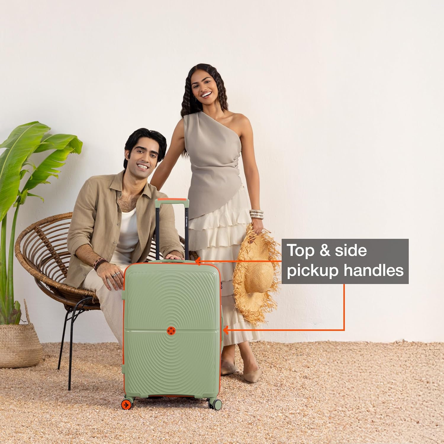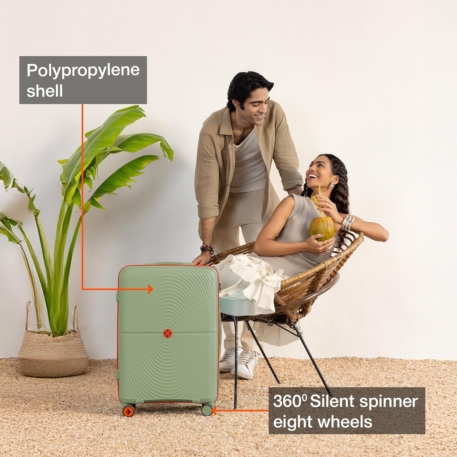 Expandable Telescopic Grip Travel comfortably with the expandable telescopic handle, featuring a simple one-button adjustment. Adjust the height for maximum comfort, ensuring a smooth and effortless journey. Secure Combination Lock Protect your belongings with a reliable built-in lock featuring a 3-digit number lock. Keep your valuables secure without the hassle of keys. Smooth Mobility Equipped with 360-degree multi-directional spinner wheels, this trolley bag glides smoothly and silently in every direction—making every trip easier, more comfortable, and less tiring. Durable Exterior Crafted from premium polypropylene, the durable exterior of this trolley bag is engineered to endure the toughest travel conditions. The unbreakable shell shields your belongings from impact, scratches, ensuring your items stay safe no matter where your journey takes you. Space-Saving Storage Design Featuring a space-saving storage design, this trolley bag offers smart compartments, compression straps, and a zippered divider keep everything in its place. A design that adapts to your travel needs, without compromising on storage capacity. Specifications Cabin | 55 cm | Small : 38 x 22 x 55 cm; 2.6 kg (Capacity: 46 liters) ; Check-in | 65 cm | Medium : 43 x 25 x 65 cm; 3.4 kg (Capacity: 70 liters) ; Check-in | 75 cm | Large : 50 x 29 x 75 cm; 4.2 kg (Capacity: 109 liters)