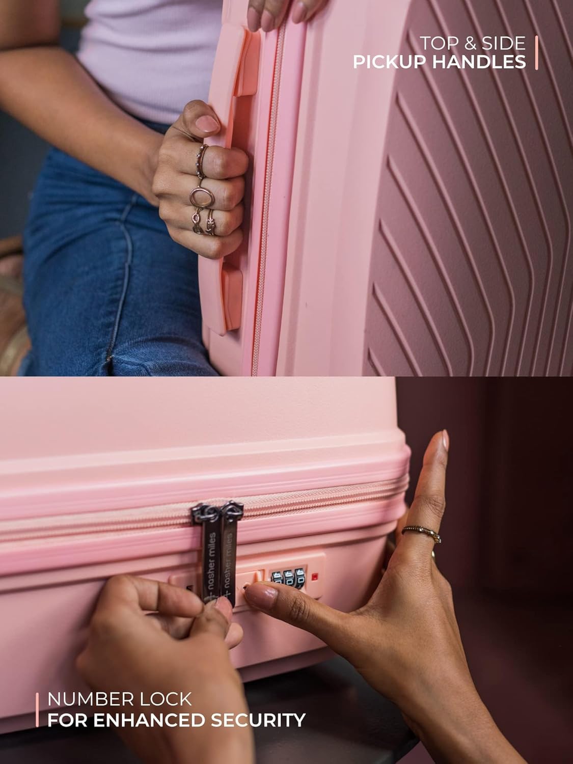 Customers find the suitcase beautiful and trendy, lightweight, and appreciate its nice color. However, the durability receives mixed feedback, with some finding it sturdy while others report top and side handles breaking in single use. The quality and value for money also get mixed reviews, with some considering it a good purchase while others say it’s not worth the price. The scratch resistance is negative, with customers reporting minor scratches, and the lock quality receives mixed feedback.