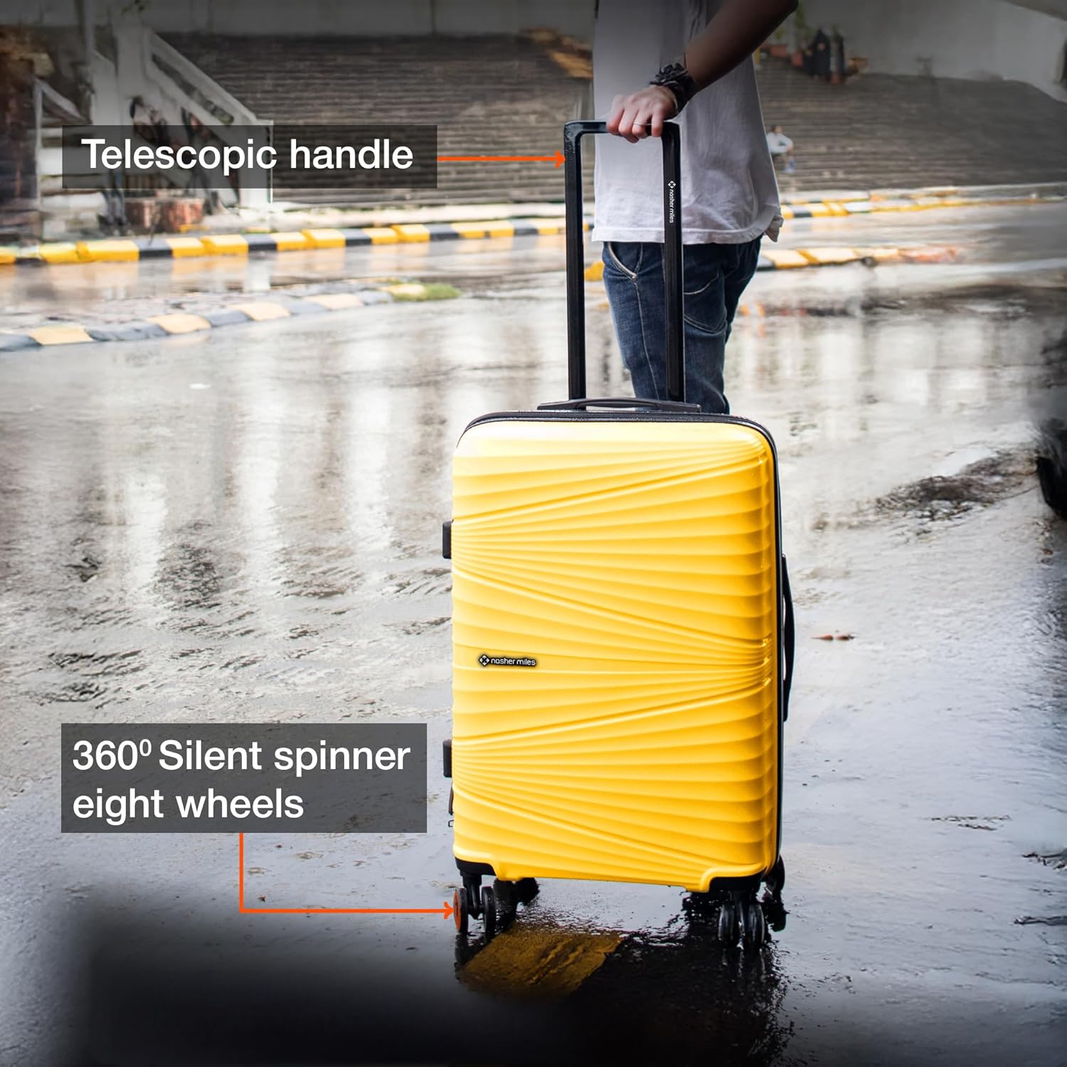 Effortless 360° Spinner Wheels: Glide smoothly on any surface with eight 360-degree rotating wheels, effortless mobility. Whether you are moving on the road, passing through an airport, narrow lanes or busy roads, these wheels give you complete control over your luggage. Features easy-to-grab handles on the top and sides.