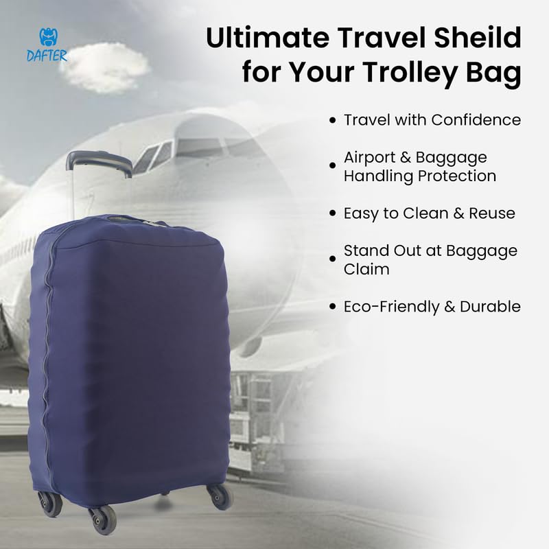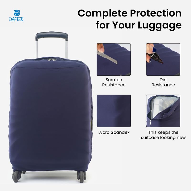 DAFTER Lycra Spandex Suitcase Cover Inch Made of high quality Lycra Spandex material, this travel cover is designed to keep your suitcase safe from dust, scratches, spills and wear and tear during every trip. The stretchable and elastic fit ensures a strong grip around your trolley bag, while its waterproof and dustproof properties provide all-round protection. Whether you’re traveling by flight, train or road, this suitcase cover is lightweight, washable and reusable, making it the ideal travel companion for frequent travelers and explorers. The sleek black design gives your belongings a premium look while keeping them well protected.