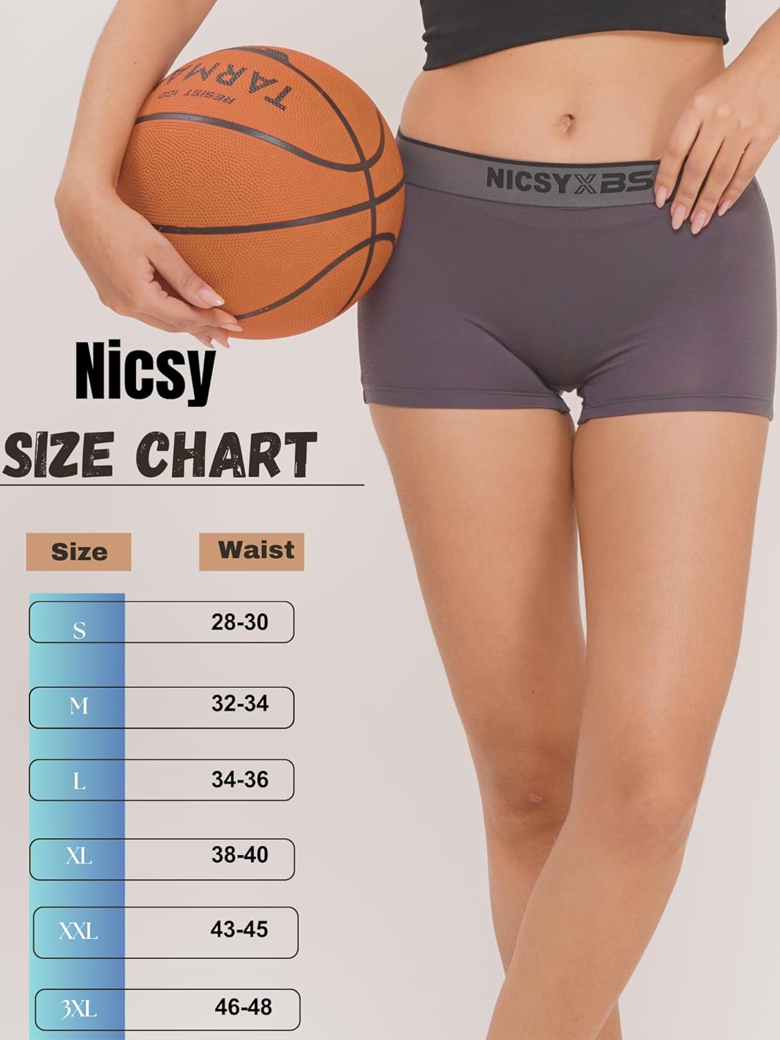 NICSY- Stylish Design- Women Boys Shorts Underwear/Girls/Women, Suitable for Daily/Sport Long Time Wear. Deodorant technology and breathable design keep you dry and comfortable all day long. Three classic colors available (black, light grey, grey)