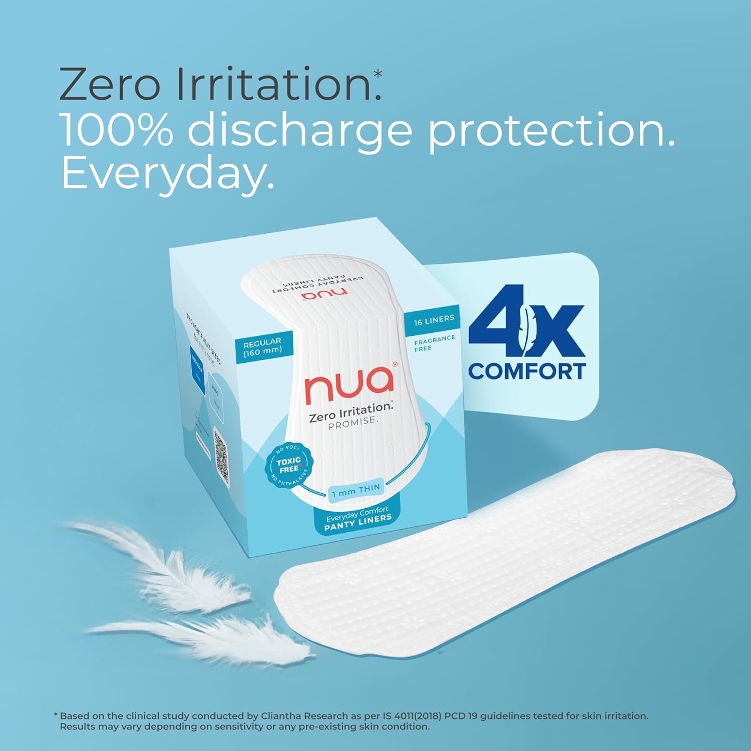 All-round Protection: Nua panty liners keep you dry and fresh all day long. The liner does not move from its place.