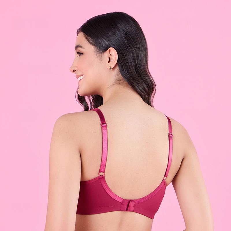 Experience all-day comfort with this non-padded, non-wired bra crafted from soft, stretchy cotton that gently supports your natural shape. Designed for ease and breathability, its anti-microbial finish keeps you cool, dry and fresh no matter how active your day is. Double-layered cups provide full coverage with no nipple show, while contoured side panels provide a subtle lift for a smooth and confident silhouette. Enjoy unmatched support with padded wide straps that stay put without slipping, and wide side wings that prevent bulges for a snug fit. This bra combines gentle support with thoughtful design, making it perfect for everyday wear. To keep it looking and feeling its best, hand wash with mild detergent, avoid wringing, bleaching or ironing to maintain its softness and shape.