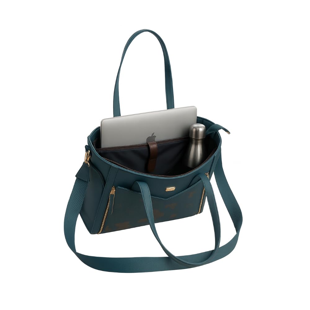 Elevate your everyday style with the OZO Ultimate Office Tote Bag for Women – the perfect blend of functionality, luxury and comfort. Crafted from premium water-resistant vegan leather, this elegant work bag is designed to meet the needs of modern professionals. The tote includes a dedicated padded laptop compartment (fits up to 15.6 inches), an insulated lunch box section to keep your food fresh, and a trolley fastener strap for hassle-free travel. With multiple organizer pockets, you can neatly store your phone, pens, chargers, notebooks and makeup essentials – keeping everything easily accessible. Featuring gold-tone zippers, dual top handles and an adjustable detachable shoulder strap, this tote is both versatile and stylish – perfect for the office, business trips, college and the daily commute. Available in elegant colors like brown, tan, blue and black, it’s your ultimate all-in-one professional companion, whether you’re commuting to work or catching a flight, the OZO Ultimate Office Tote ensures you stay organized, confident and comfortable every day.
