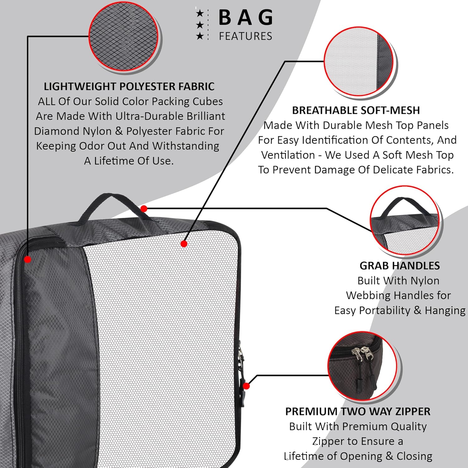 ✈ MADE IN INDIA, Material of packing cubes: Polyester + Mesh, Zips of travel accessories: 5 without zipper (open and close for life), Runners of packing bags for clothes – 3.8 g in 1 pc Puller (Double zipper puller makes opening and closing simple and fast, Sewing convenient handle