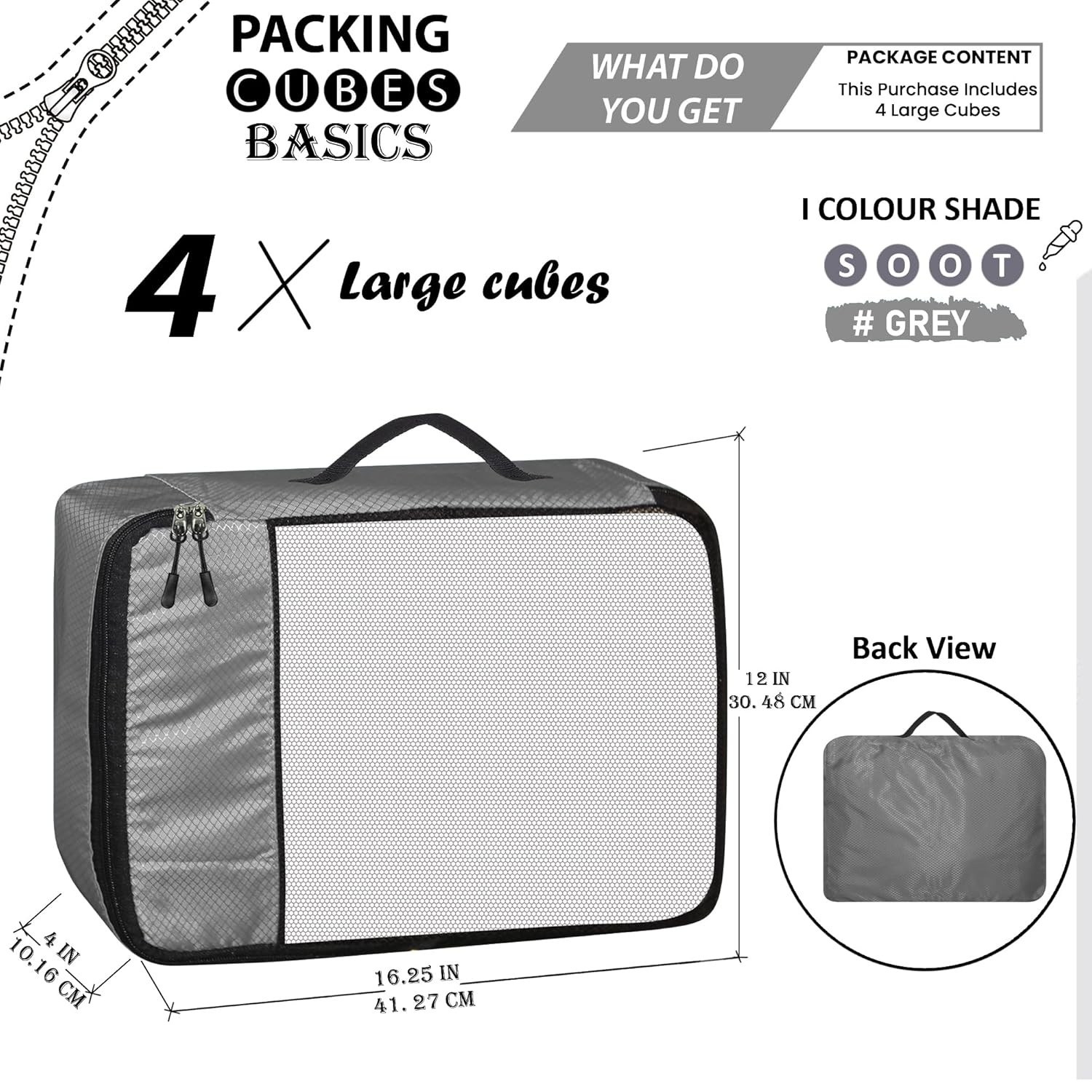 ✈ LARGE PACKING BAGS DIMENSIONS: 16.25 PACK OF 3 AND TRAVEL POUCH FOR MEN AND TRAVEL ESSENTIALS FOR WOMEN PACKAGE CONTENTS: PACK OF 4 LARGE PACKING BAGS FOR CLOTHS (40x30x10 CM)