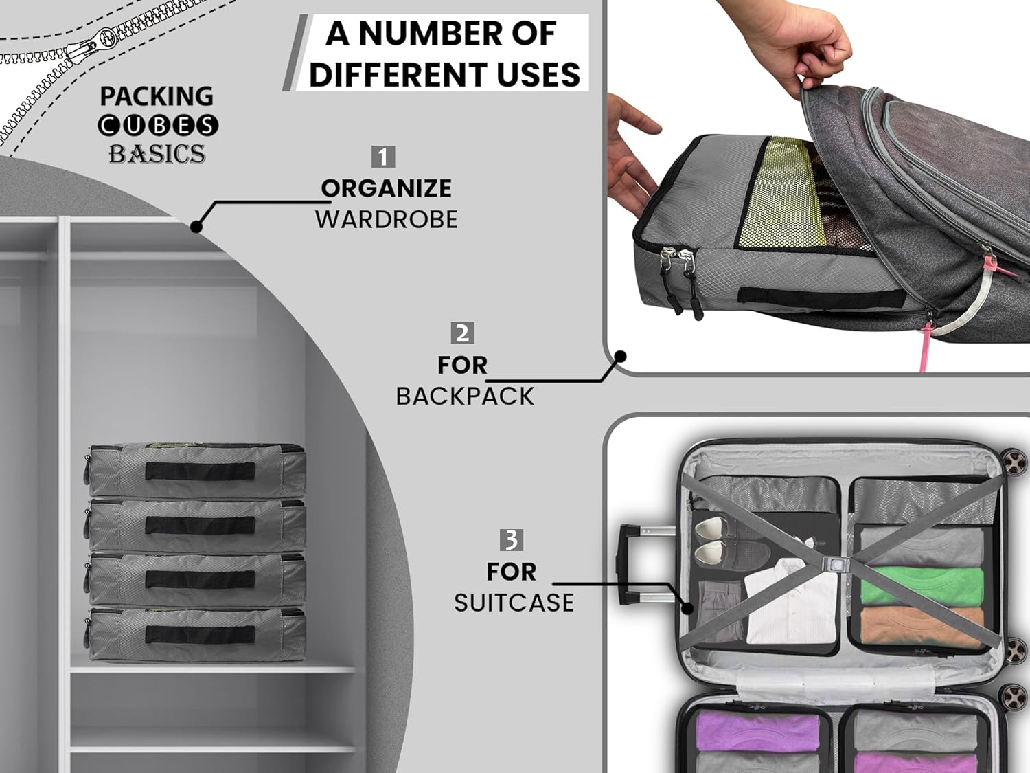✈ Luggage Compatibility: Compatible with most travel bags, luggage suitcases, backpacks, bag packs, duffel bags, travel pouches for women. Can fit in 24-25 inch travel luggage. These travel cubes for packing can make it easier to save space in your luggage or bag by classifying your items and keeping them from getting lost. This also speeds up security checks at the airport