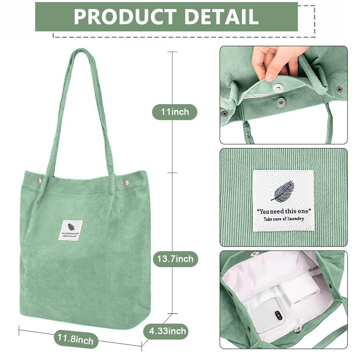 It is made of corduroy material, which is comfortable and durable, has a high load capacity, and is wear-resistant and difficult to deform. The bag is extra sturdy due to fine stitching and strong handles.