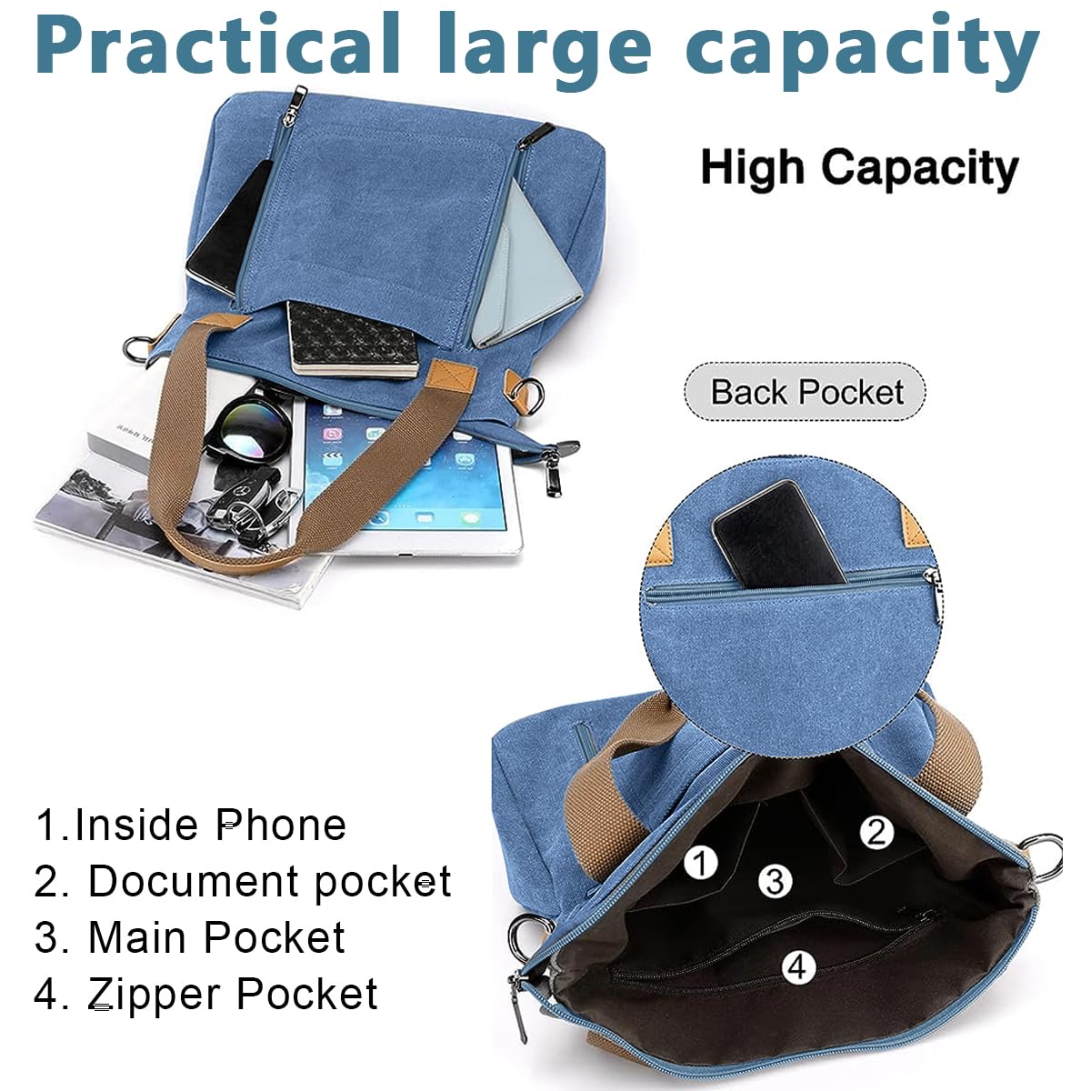 This vintage canvas shoulder bag offers medium size and large capacity. It consists of a rear zipper pocket, front zipper pouch and one-main compartment. The front zipper pouch can be used to keep essentials.