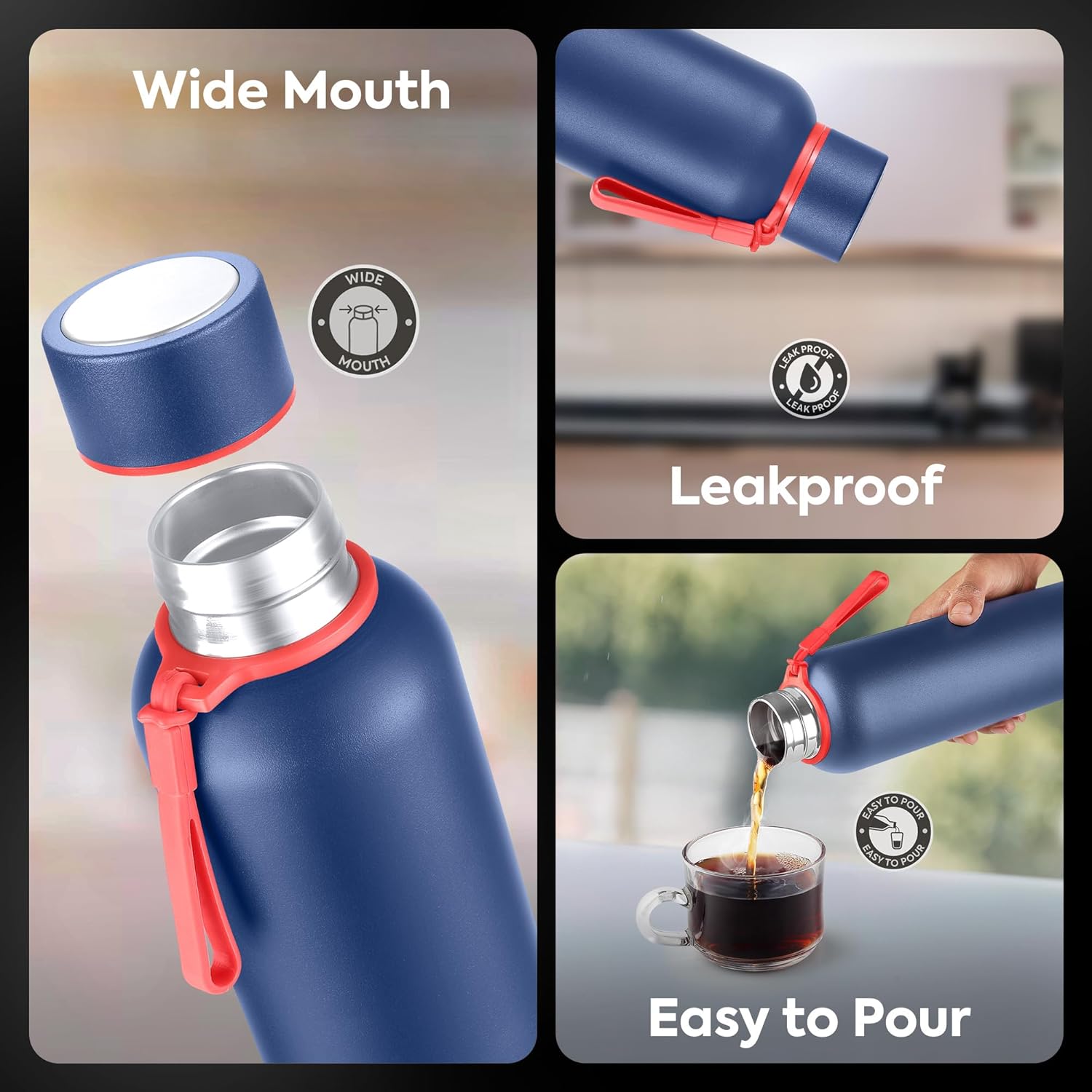 Portable Design: This insulated water bottle features a durable finish and portable design, scratch-resistant coating and a soft base for impact protection. The silicone strap makes it easy to take anywhere – home, office, gym or travel