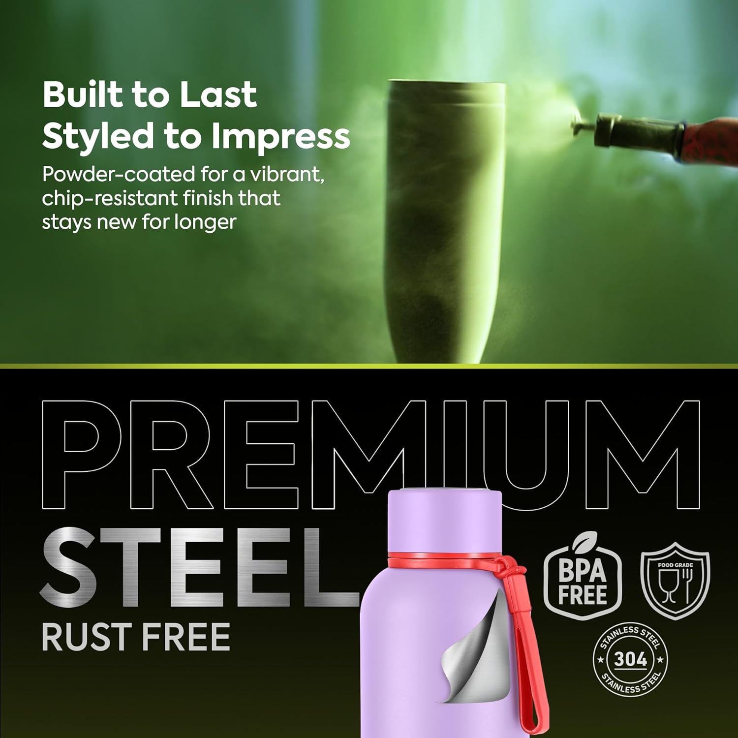 Portable Design: This insulated water bottle features a durable finish and portable design, scratch-resistant coating and a soft base for impact protection. The silicone strap makes it easy to take anywhere – home, office, gym or travel