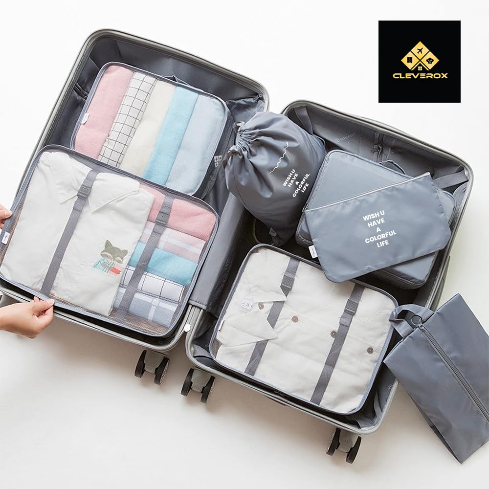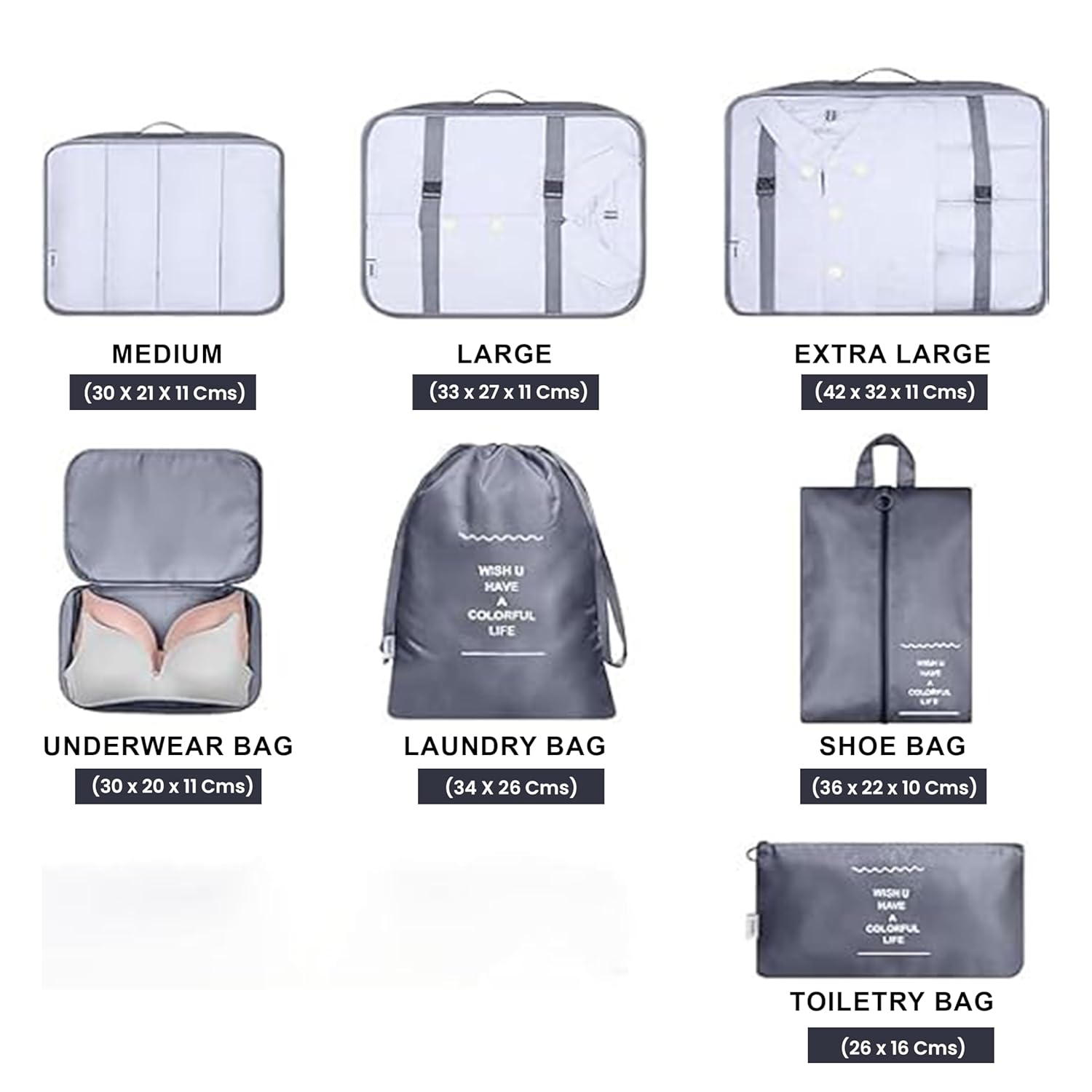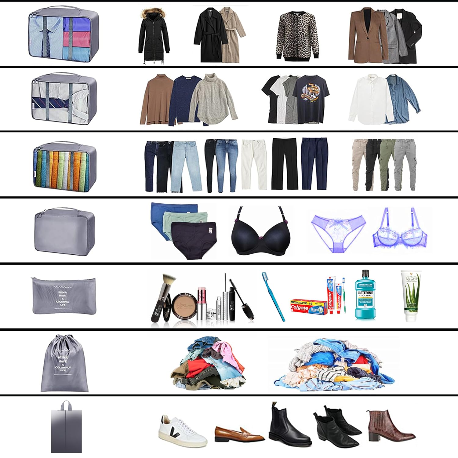 COMPLETE 7-PIECE SET: Includes packing cubes and pouches for clothes, shoes, toiletries and laundry to meet all packing needs.