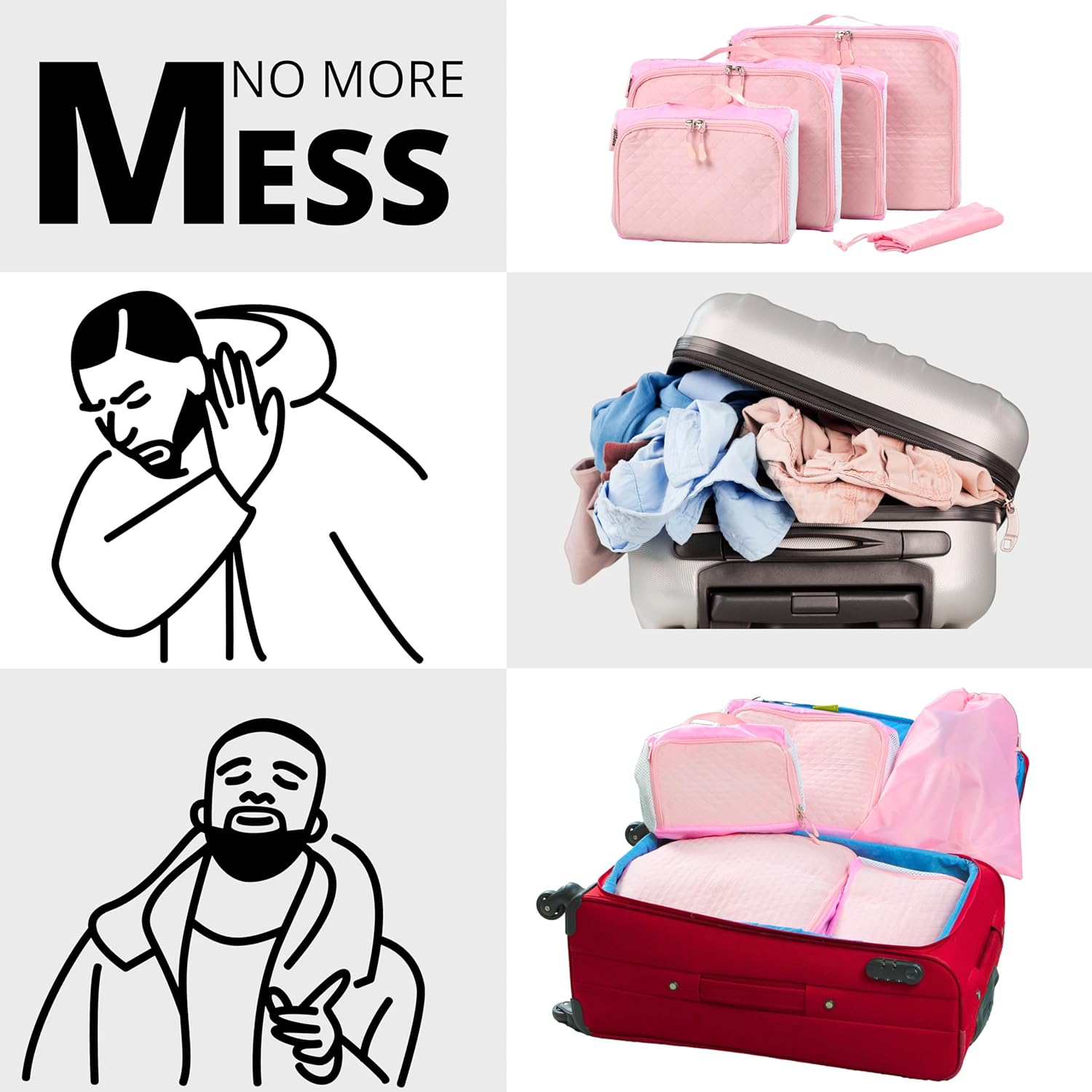 【Value your privacy】: When going through security checks, there may be a need to open the luggage cubes. We made some changes based on the products available in the market and changed the mesh from front to side, making the front of the bag invisible. Moreover, when we store it ourselves, it is easy to separate the clothes in each bag through the mesh on the side. This set of travel pouches for luggage will make your life much easier while traveling.