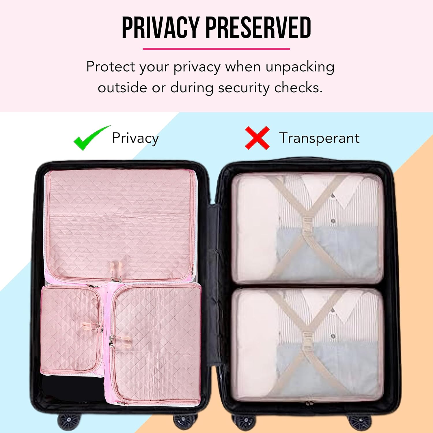 【Value your privacy】: When going through security checks, there may be a need to open the luggage cubes. We made some changes based on the products available in the market and changed the mesh from front to side, making the front of the bag invisible. Moreover, when we store it ourselves, it is easy to separate the clothes in each bag through the mesh on the side. This set of travel pouches for luggage will make your life much easier while traveling.