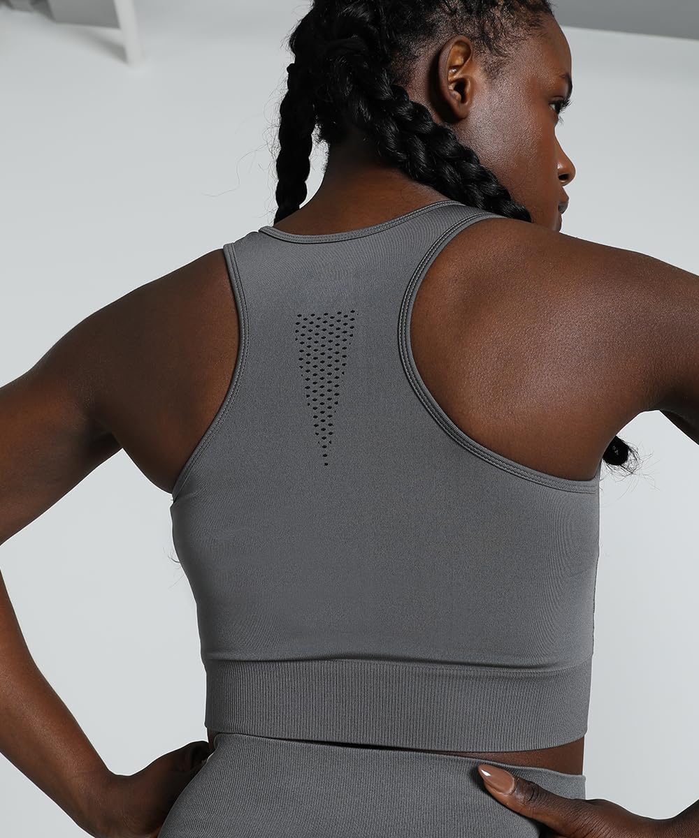 Product Story: Streamline your workout in this seamless performance bra. Built for medium-impact training, it provides lock-in support and eliminates jarring and irritation, so you can focus on your fitness goals without distractions, power through high-intensity intervals, and smash new PRs. Details Tight fit Scoop neck Seamless moderate impact support Built for versatile performance Stable shoulder straps with racerback construction for unrestricted movement PUMA Cat logo