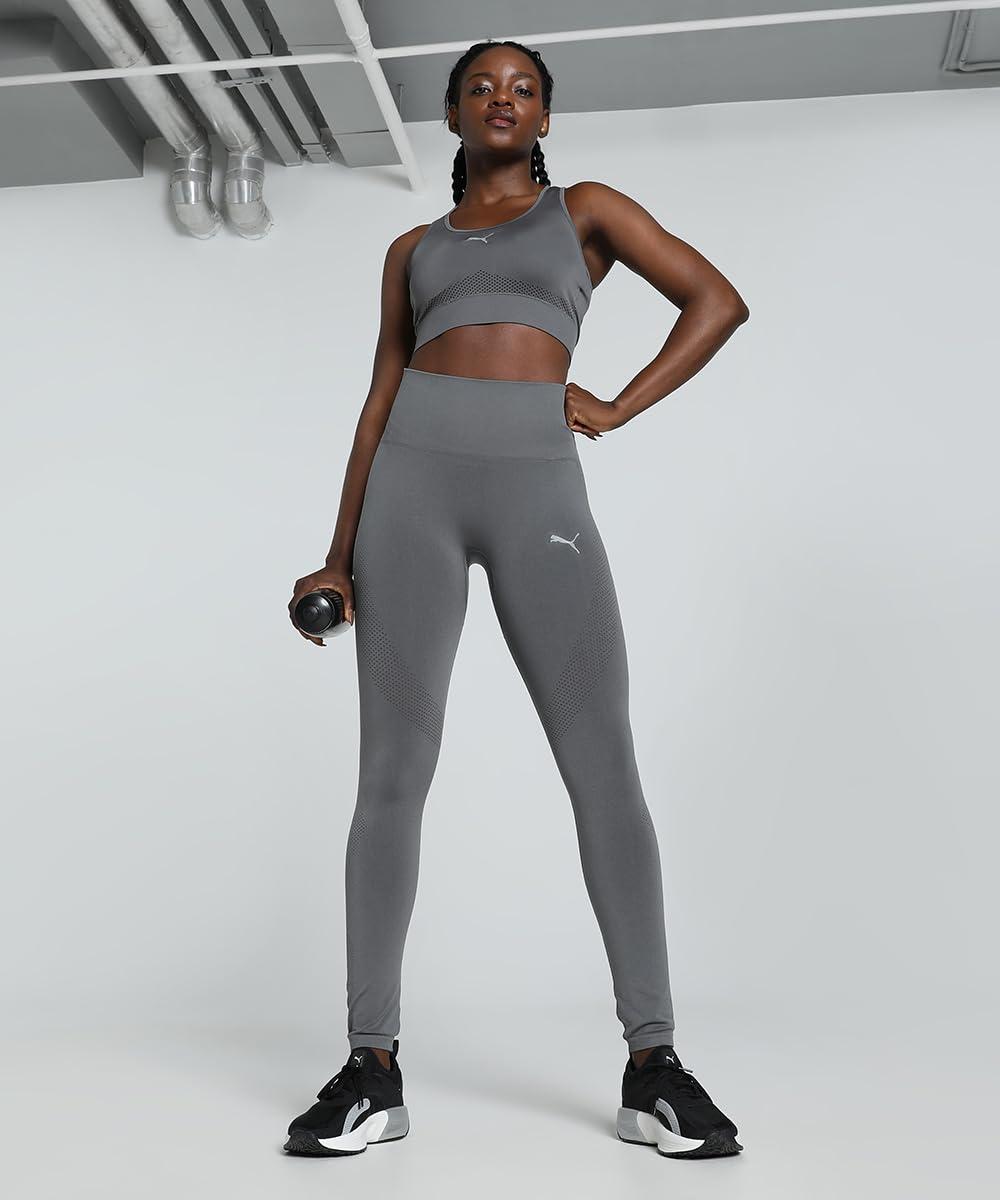 Product Story: Streamline your workout in this seamless performance bra. Built for medium-impact training, it provides lock-in support and eliminates jarring and irritation, so you can focus on your fitness goals without distractions, power through high-intensity intervals, and smash new PRs. Details Tight fit Scoop neck Seamless moderate impact support Built for versatile performance Stable shoulder straps with racerback construction for unrestricted movement PUMA Cat logo