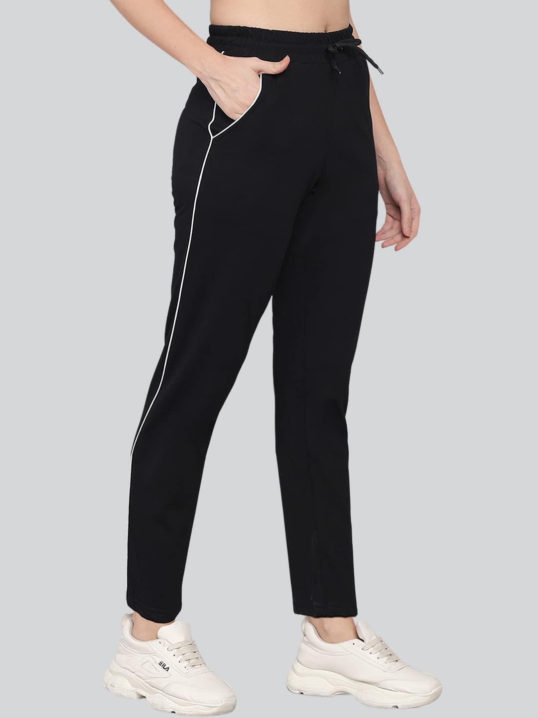 Smart Fit Regular Wear Women’s Track Pant offered by Q-Reus with Premium Bio Enzymes was made of 100% combed cotton fabric. The round stripe side detailing and patch pocket at the front give a distinctive sporty look. Suitable for gym, yoga, cycling, night wear, casual wear and other sports.