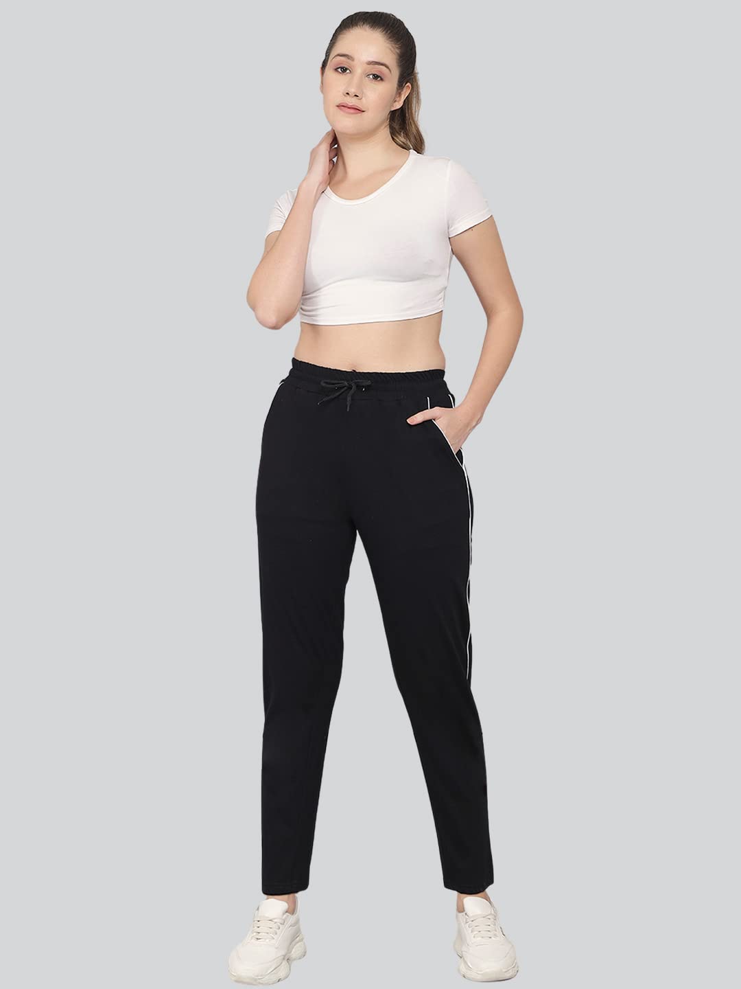 Smart Fit Regular Wear Women’s Track Pant offered by Q-Reus with Premium Bio Enzymes was made of 100% combed cotton fabric. The round stripe side detailing and patch pocket at the front give a distinctive sporty look. Suitable for gym, yoga, cycling, night wear, casual wear and other sports.