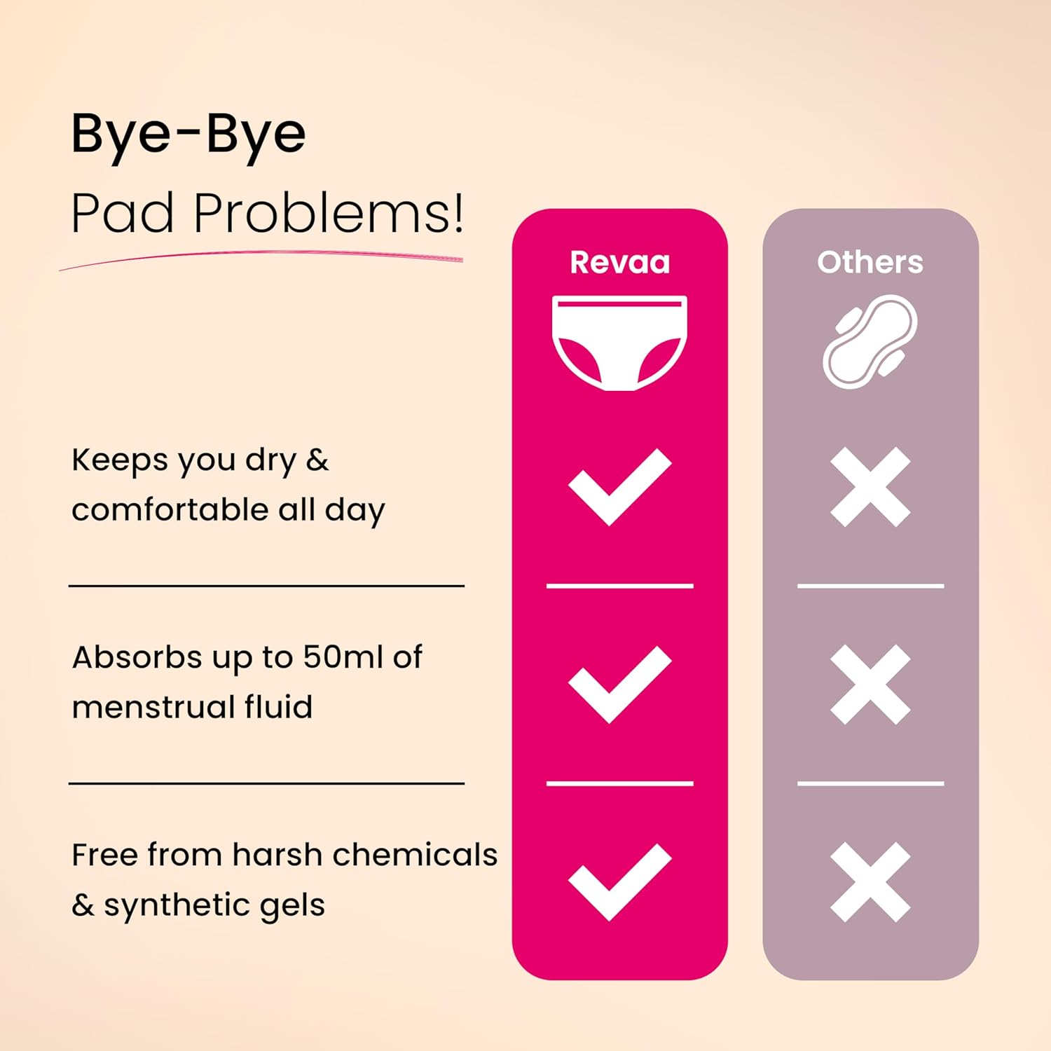 Say goodbye to pads and rashes. Revaa’s multi-layer tech locks in leaks, neutralises odour, and feels just like your favourite pair of underwear.