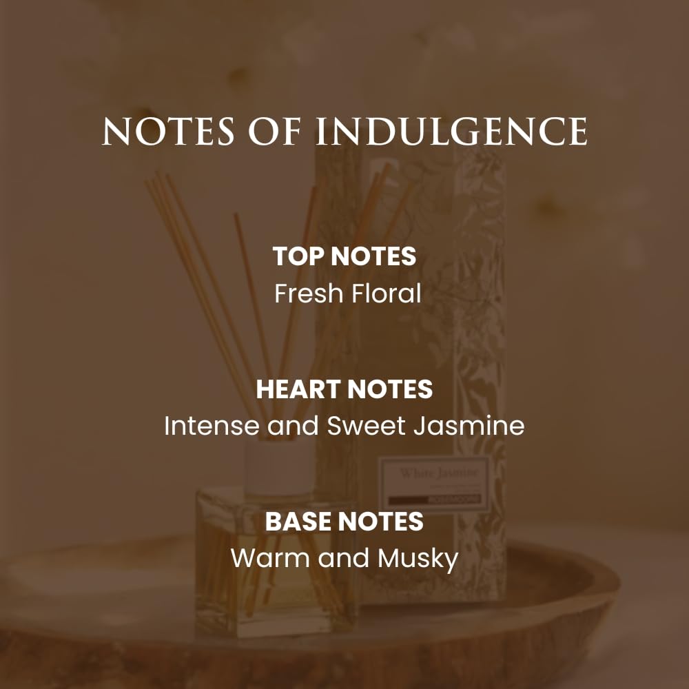 The fragrance of the magnificent white jasmine: Change your location with white jasmine and floral fragrance of white jasmine. This 200 mL diffuser includes 10 premium Ratan Reid Stick to create a fresh and elegant atmosphere.