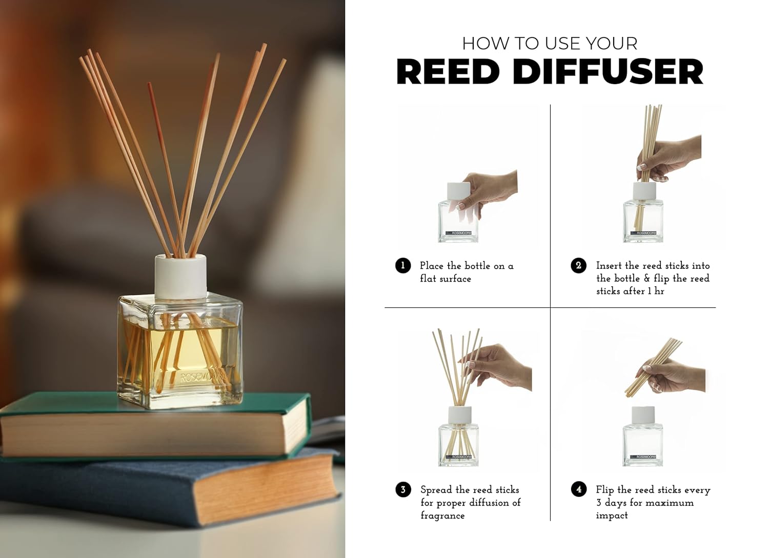 Long lasting freshness: Enjoy up to 2.5 months of continuous aroma. Adjust the intensity by flipping the reed stick from time to time to refresh the smell.
