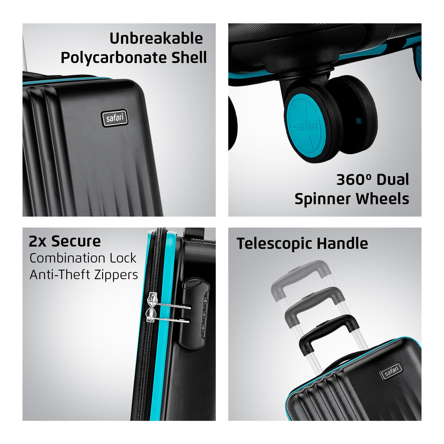 Introducing Safari CityMiles – the perfect companion for modern business and leisure travel. This airline compliant trolley bag is designed to maximize packing space, providing up to 30% additional volume compared to other luggage bags. Made from unbreakable polycarbonate material, this suitcase is built to withstand the rigors of modern travel. Featuring 8 smooth-gliding wheels for effortless handling, it is very easy to navigate in busy airports or crowded places. The integrated 3 digit combination lock and anti-theft double zipper ensure that your belongings are extremely safe. Made in India, this trolley bag comes with a 5-year international warranty against manufacturing defects.