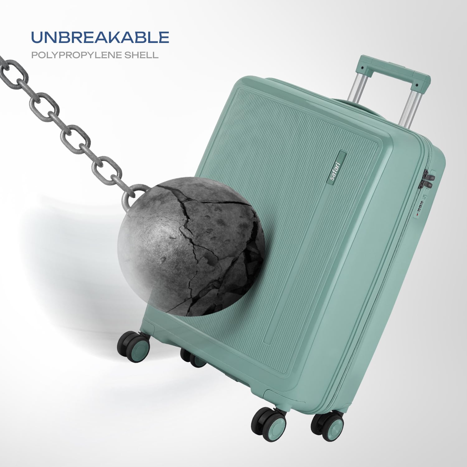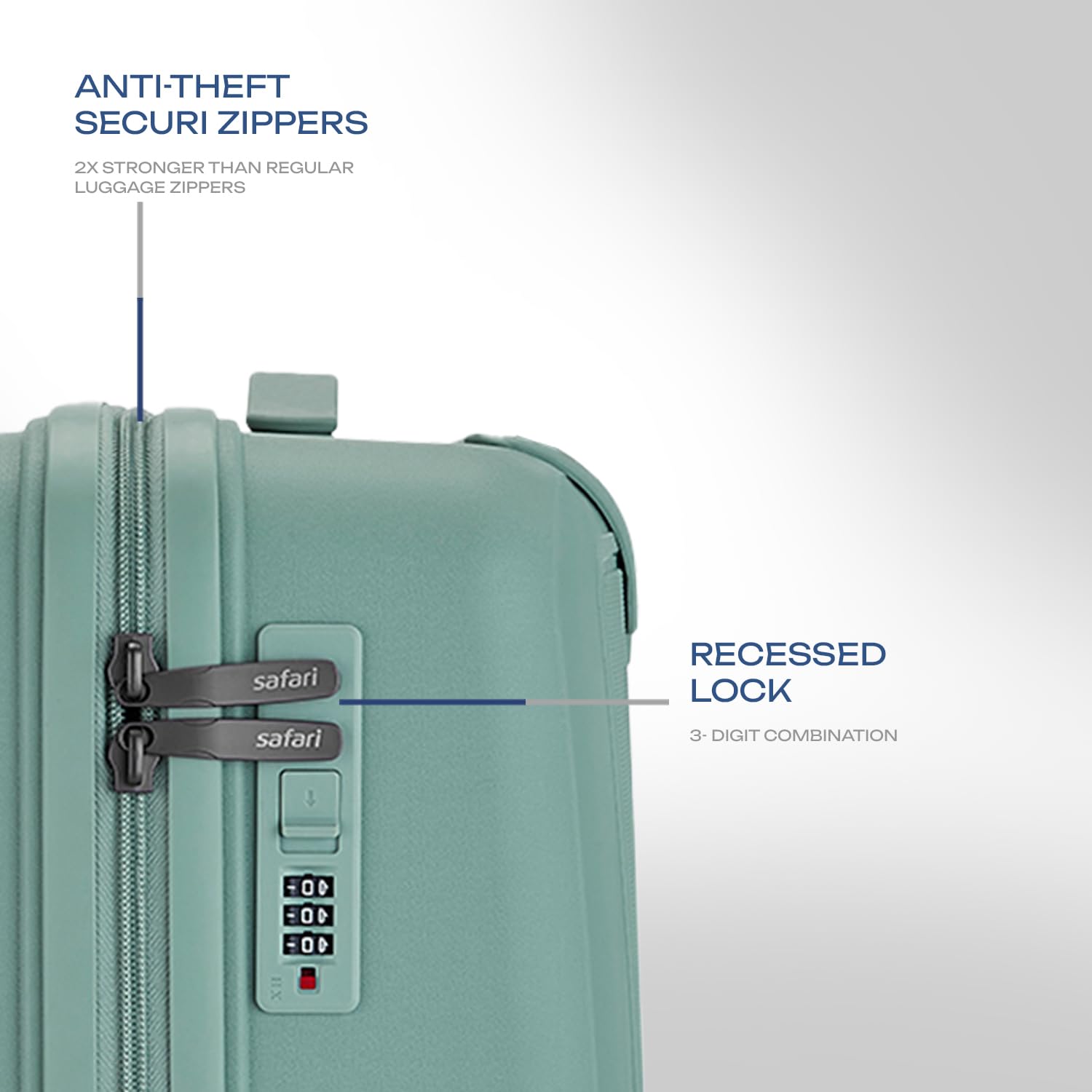 Introducing the Safari Cooper – your ultimate travel companion designed for modern travel. This innovative piece of luggage combines functionality, safety and style, making it an ideal choice for international travel. Made from high quality polypropylene, this trolley bag is exceptionally lightweight without compromising on durability. This allows passengers to maximize packing capacity while avoiding excess baggage fees. Equipped with 360 degree spinner wheels, this 8 wheel trolley bag offers superior mobility. 2x strong anti-theft security zippers and 3 digit combination lock ensure that your belongings are highly protected. The 5 Year International Warranty ensures we’ve got you covered on every trip.