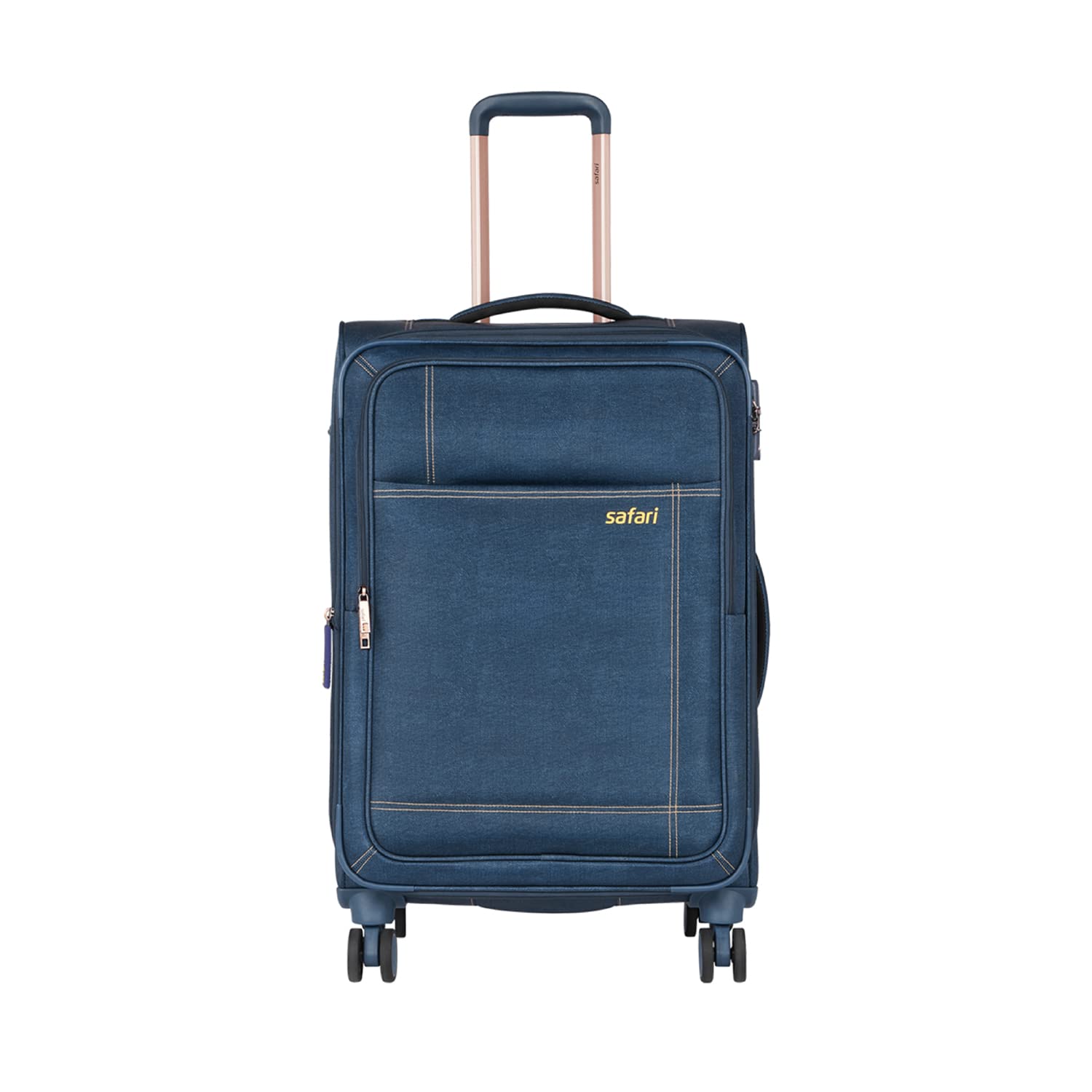 Make our trolley bag your best companion for all your work trips or holidays. With unmatched build quality the Safari is made from denim plus polyester fabric making it lightweight and durable. Our stylish colorful suitcase makes your luggage a fashion statement. Our trolley is strong, high quality and durable. The bag comes with smooth rolling wheels with 360° mobility that makes your traveling easier. Our large two-compartment bag helps you organize your belongings. Easy access front pocket makes your journey hassle free. The luggage bag also comes with a side handle for ease of carrying. This convenient bag is ideal for all types of travels. The accessories are suitable for both men and women.