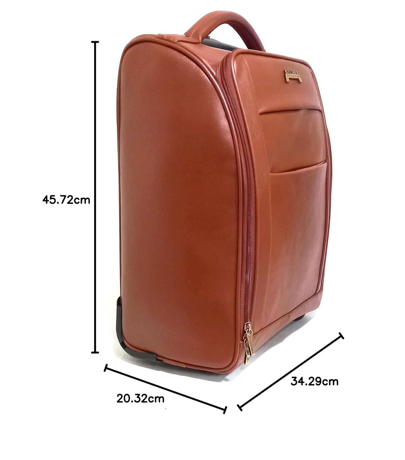20 liter capacity Product Dimensions- H-20 x L-14 x W-9 inches; Outer Material: Faux Leather | Internal material – fabric.