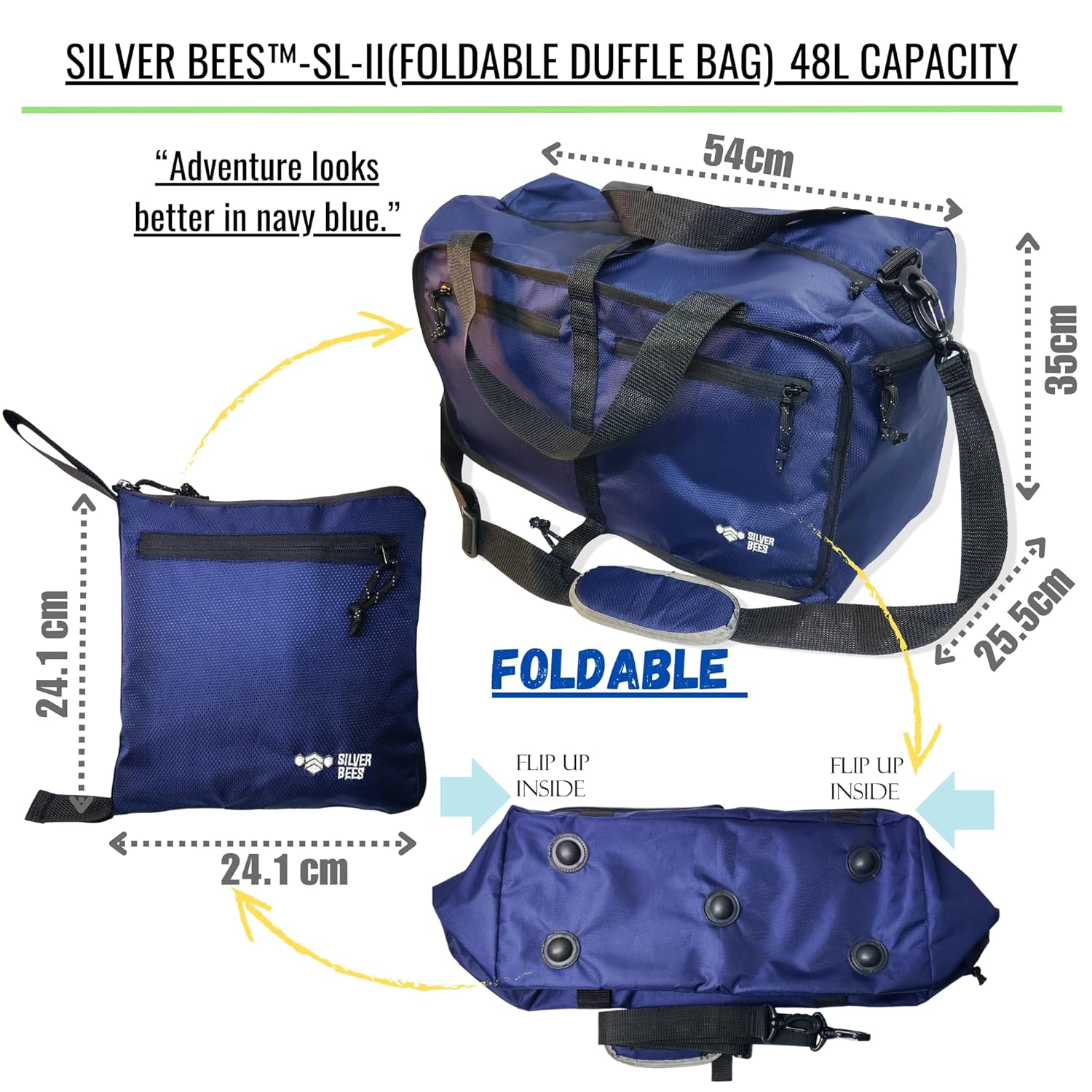 Travel Smart The Carry Light Silverbees Navy Blue Folding Duffel Bag is designed for travelers who value space and versatility. With a huge capacity of 48-litres, it can easily hold clothes, gear and essentials. Its foldable design makes it easy to store when not in use, while the detachable shoulder strap provides flexible carrying options. A removable, washable shoe bag keeps shoes separate – or serves as a pouch for laundry or gym wear. Also, it can be safely attached to the trolley bag to make airport and train travel easier. Durable, lightweight, and multipurpose, this duffel is made for every trip.