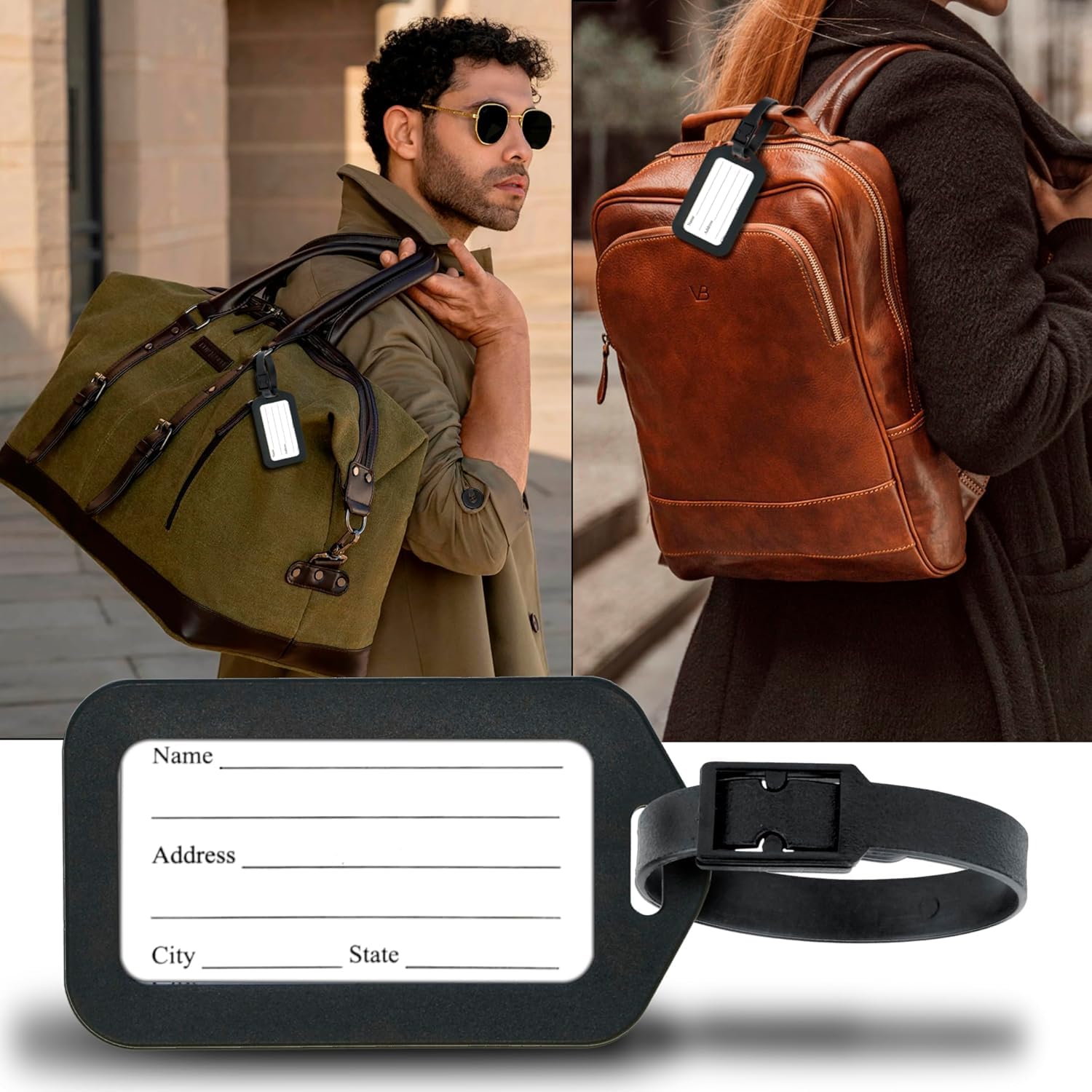 luggage tag with black strap