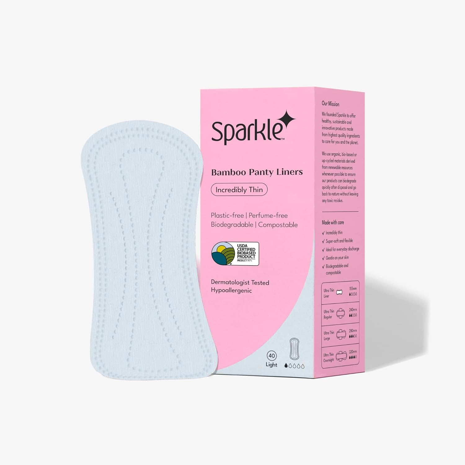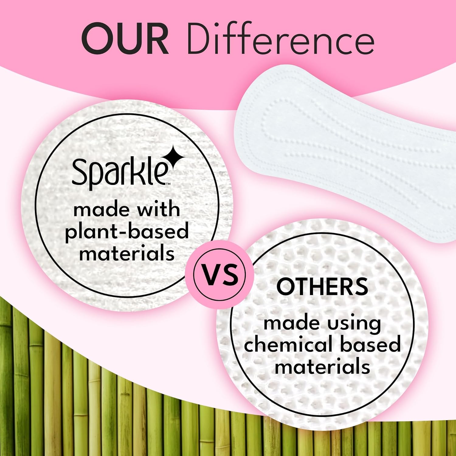 Gentle Plant-Based Feminine Care: Experience gentle care with Sparkle incredibly thin panty liners. These plant-based panty liners are made from ingredients that are kind to your skin and the environment. They contain no chlorine bleach, colors or fragrances, making them suitable for sensitive skin.