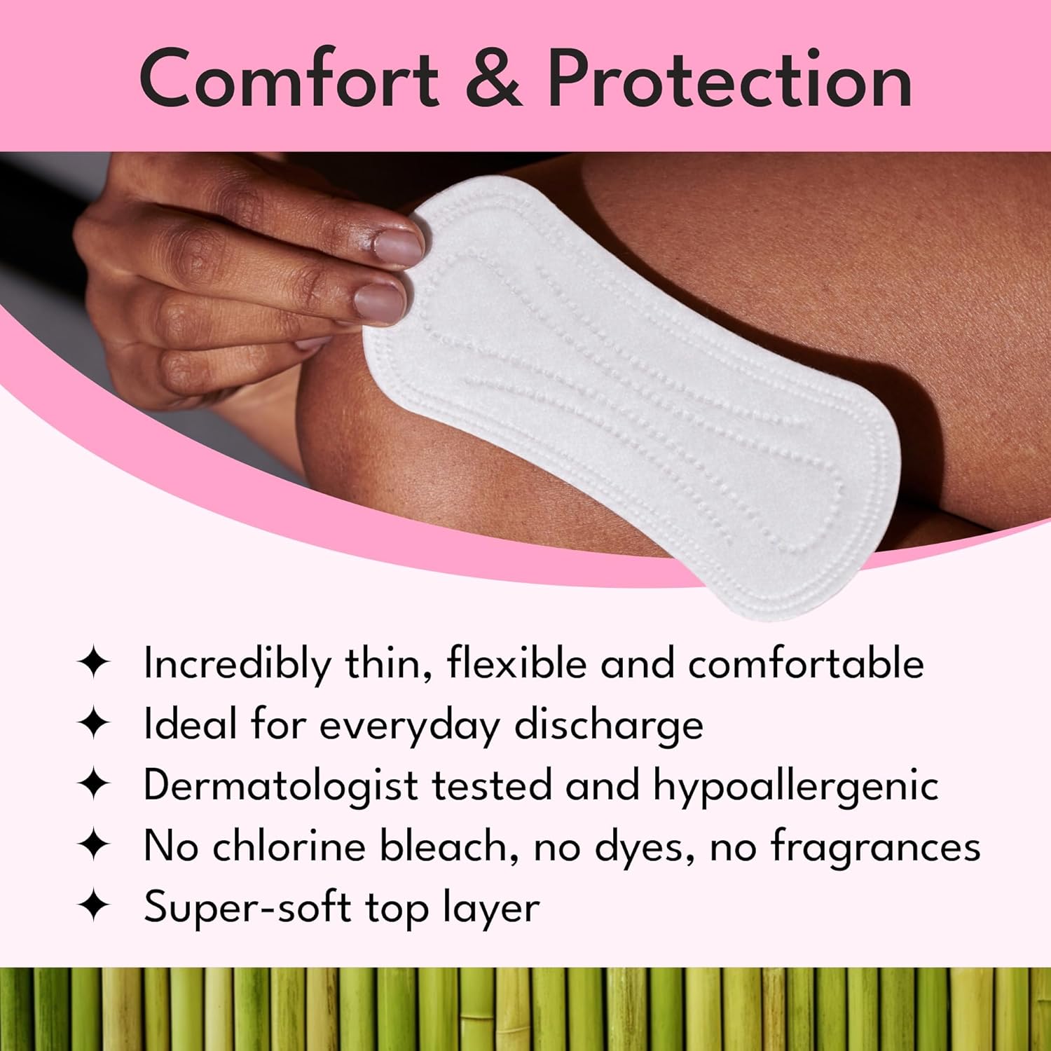 Flexible and Comfortable Liner: Shiny bamboo panty liners provide unmatched comfort and flexibility. Designed to move with you, these panty liners for women ensure you feel fresh and protected all day long. Super-soft top layer provides extra comfort for everyday use.