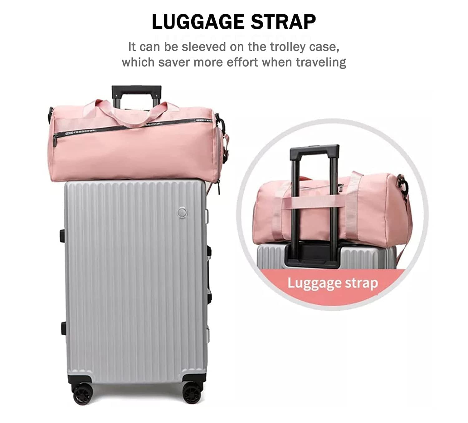 Buckle: The shoulder straps are equipped with strong and removable buckle, using quality materials, easy to put on or take off. STRONG AND SMOOTH ZIPPER: Strong and smooth zipper closure with short pull cords, easy to slide. It is not easy to divide and break. Waterproof Material: Lightweight fabric that is waterproof, durable and lightweight (Note: The zipper is not waterproof. Therefore, the entire gym bag will get wet when placed in water.) Dry/Wet Separation Design: Dry wet separate compartments for your shoes, swimsuit, wet clothes and wet towel.