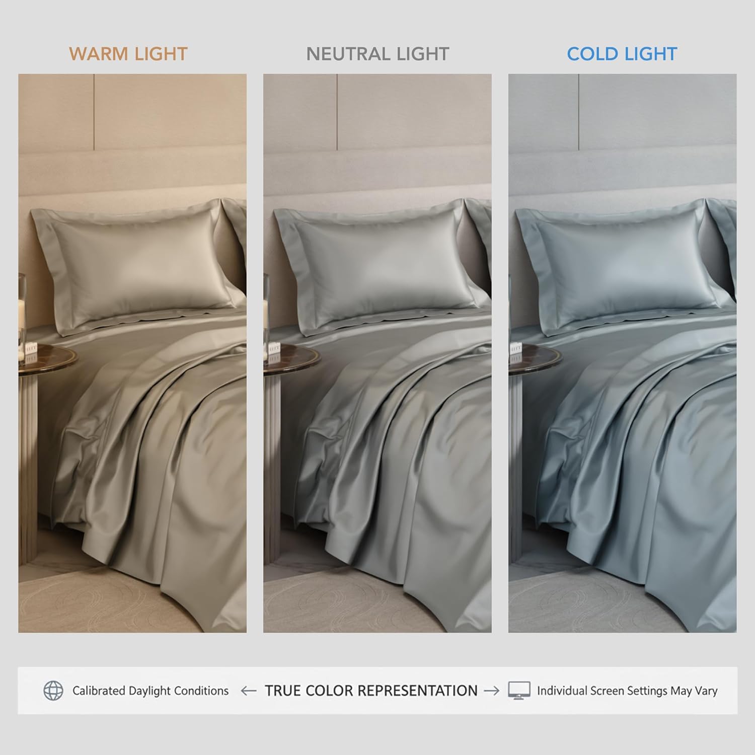 LOW MAINTENANCE: This aesthetic bed sheet set is as beautiful as it is practical, fade-resistant, machine washable, and wrinkle-reducing for effortless maintenance. Its long-lasting shine and easy care make it ideal for those who prefer everyday luxury without the extra work.