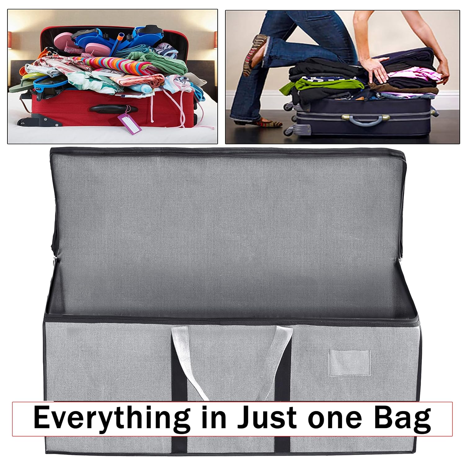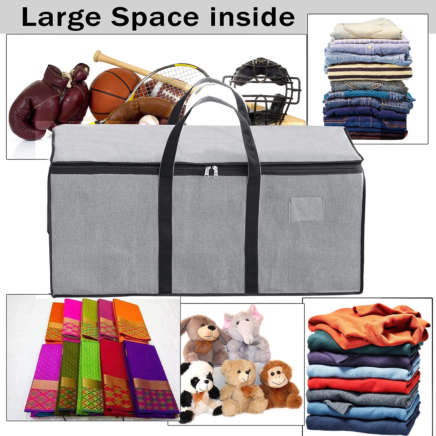 CONVENIENT: Two handles for easy carrying, two-way/dual zipper opens the storage bag for easy storage and removal, foldable when not in use, the bag can be folded back when not in use. Easily organizes blankets/sports equipment.