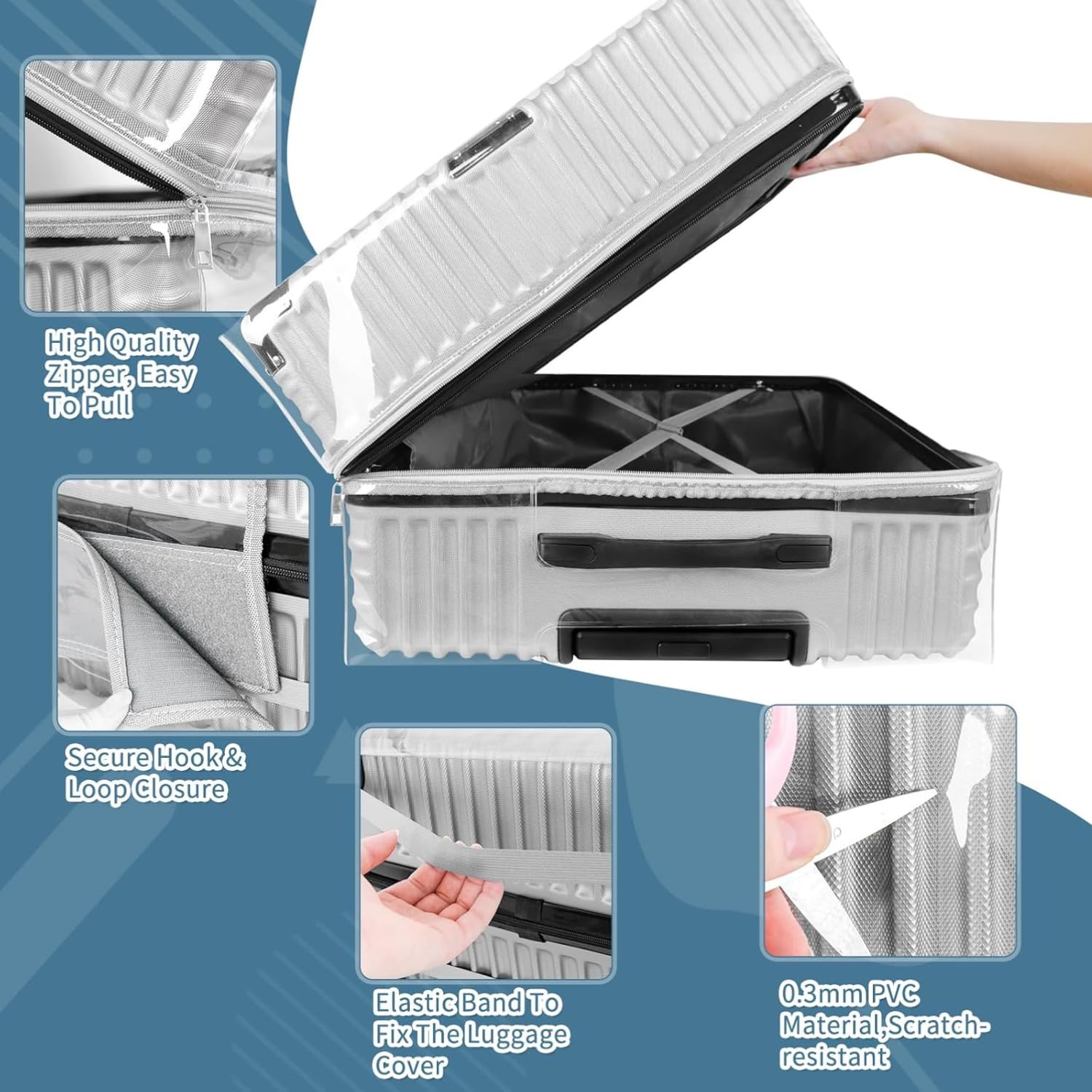 The trolley bag cover is made of high quality, thick PVC fabric, the cover is tear resistant and long lasting. Its transparent design allows clear visibility of your belongings, making it easy to find. Suitable as trolley cover.