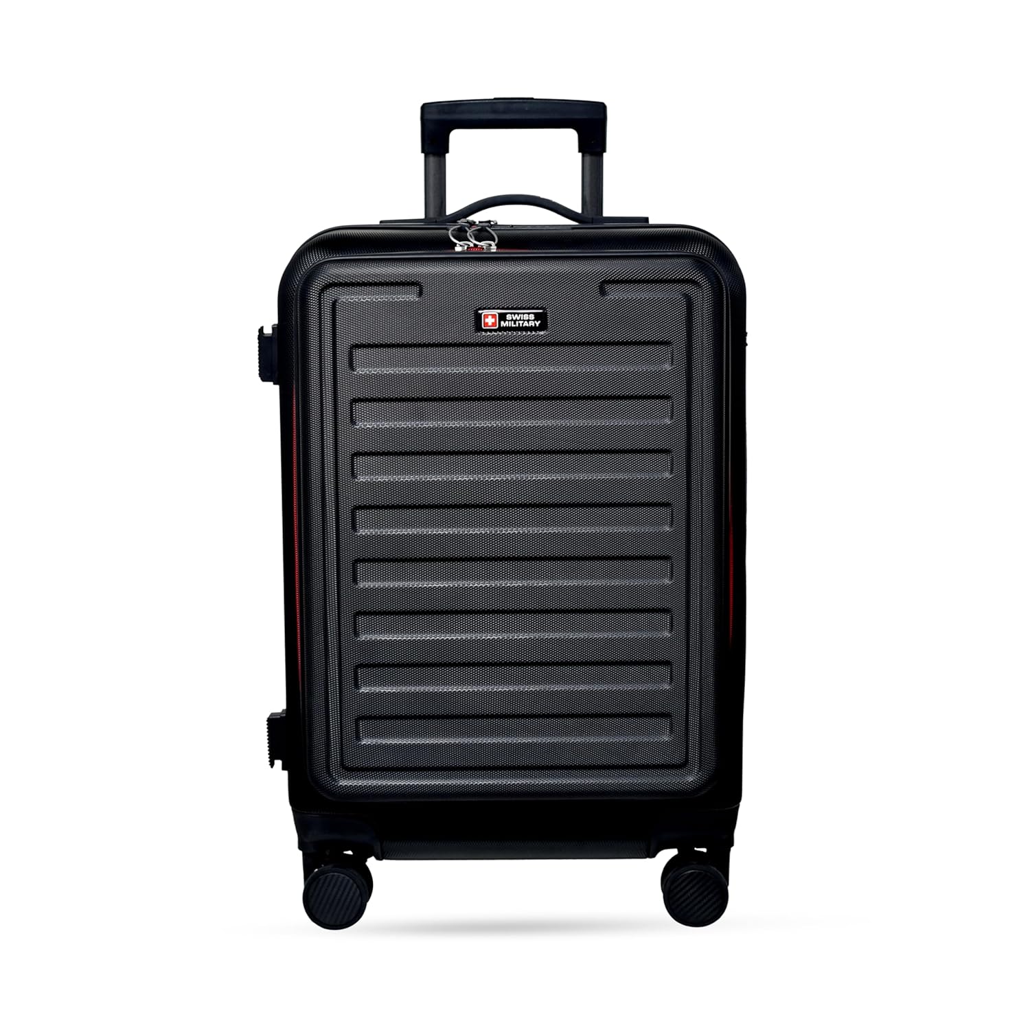 Cabin-Size Compatible with 5-Year Warranty: With dimensions of 55cm x 35cm x 27cm, this black hardcase trolley bag complies with most airline cabin luggage requirements. Backed by a 5-year Swiss Military warranty, it ensures long-term reliability, durability, and peace of mind for every journey