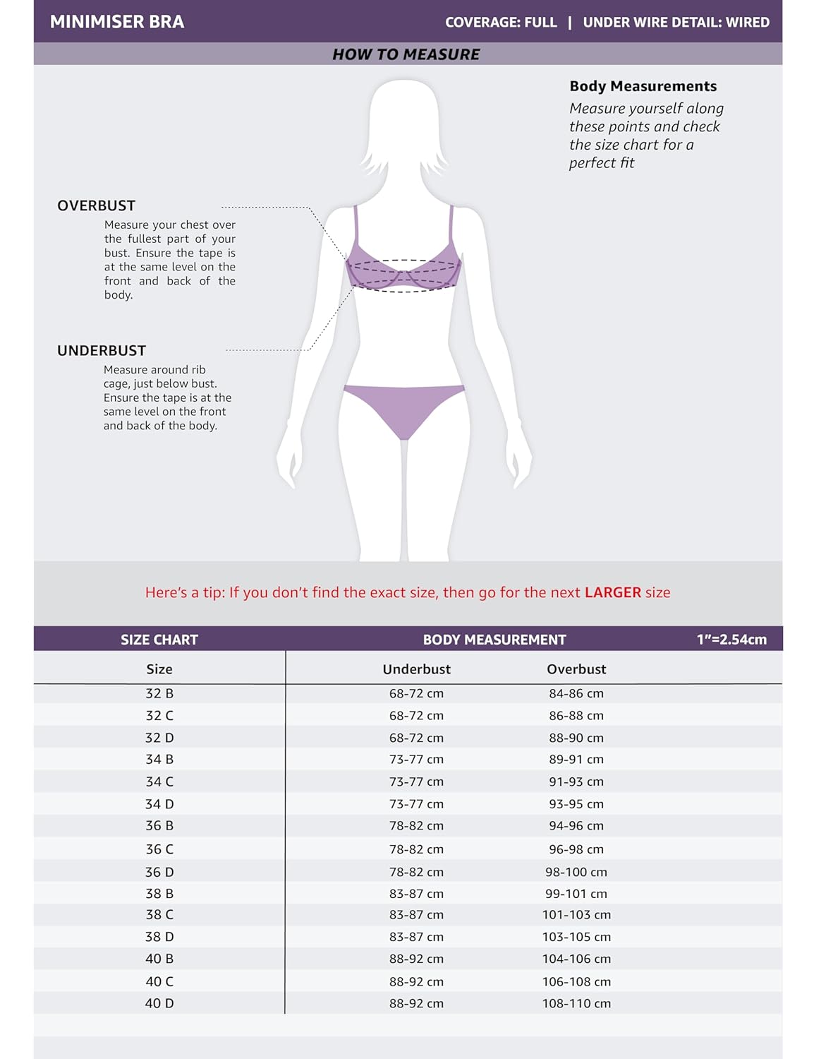 Generic Name : Minimizer Bra (Non Padded | Wired | Full Coverage | Broad Cushion Strap | 4 Way Stretch Fabric)