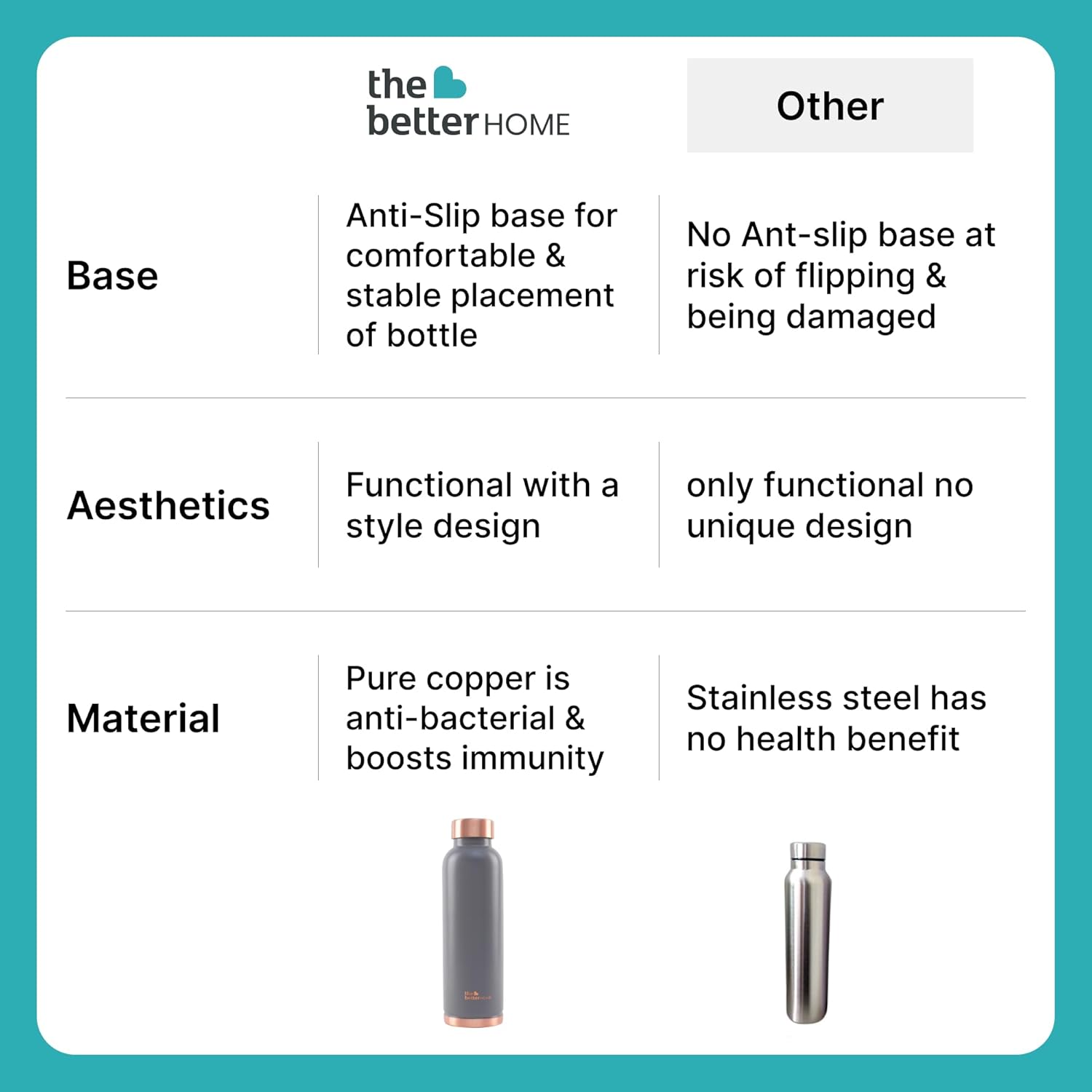 ✅ copper durability: prepared with pure copper, better home water bottle ensures long -lasting quality. With a size of 1 liter, this bottle is perfect for everyday use. The bottle falls in an attractive color range, adding a pop of color in your day.
