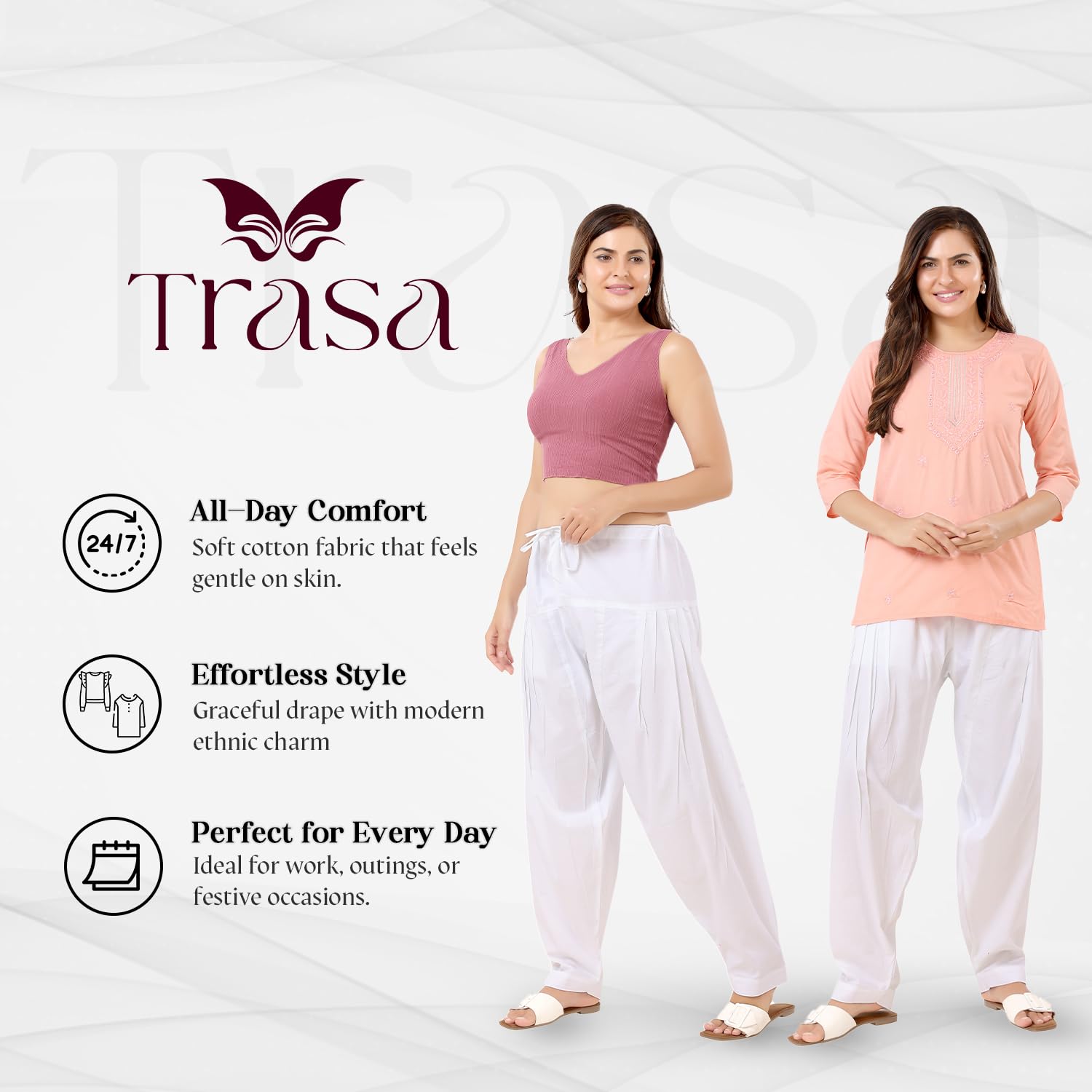 TRASA Semi Patiala Salwar Cotton One Side Pocket Traditional Indian Bottom Wear Pant – Free Size Fits Upto XXL