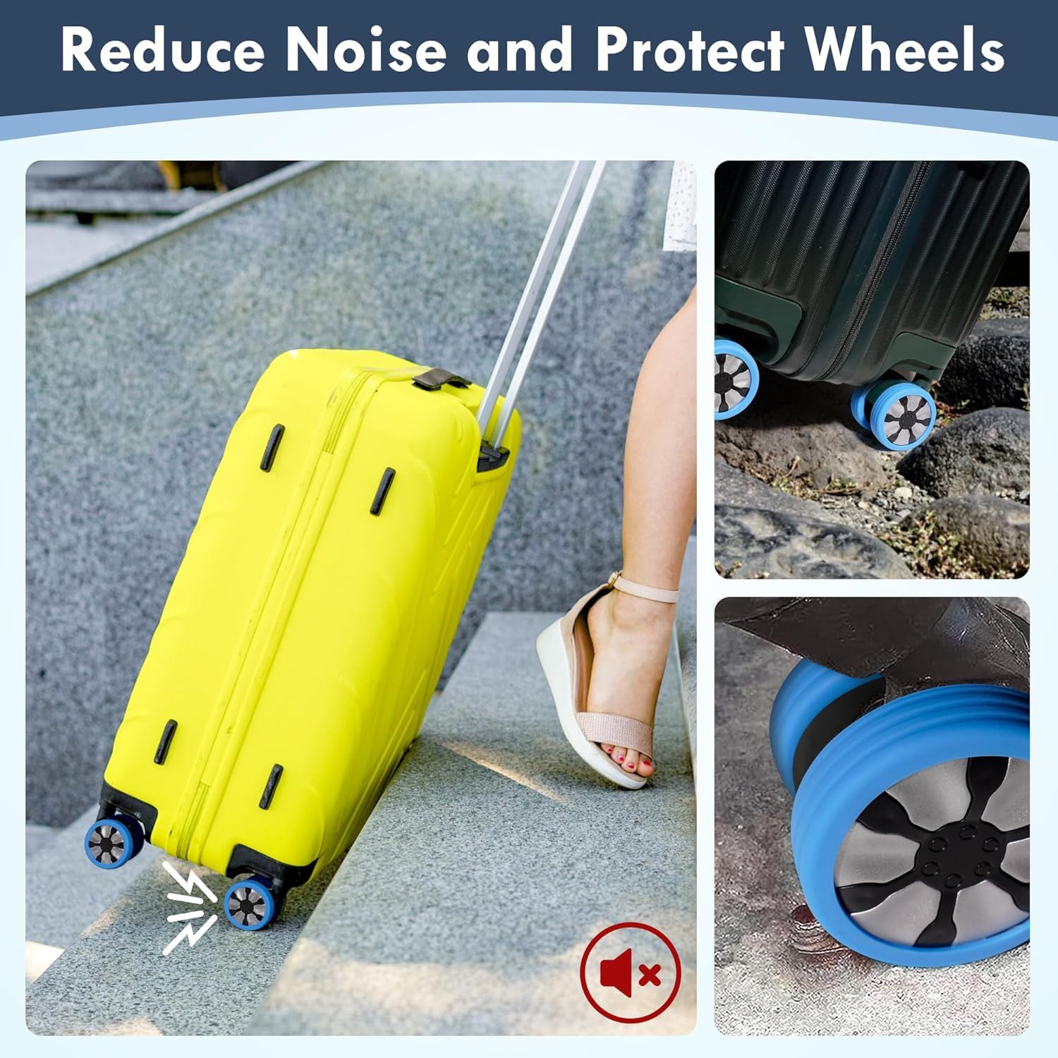 🧳 【Noise Reduction & Anti-Slip】 Experience a quiet and peaceful journey with our luggage wheel cover made of food grade silicone material. They can effectively reduce noise, vibration and impact when hauling your luggage. Its tire-like construction enhances grip, making it suitable for every weather condition, even in the rain.