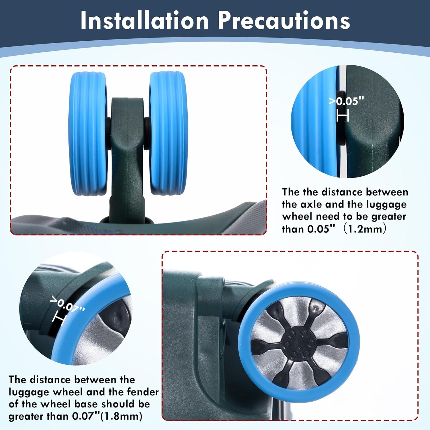 🧳【Perfectly Compatible】They fit suitcases of various brands and models, can be used for most different luggage suitcase wheels, and can also be used for various office chairs. Please Note: 1.Suitable for two-wheeled luggage. 2. Suitable for 2 to 3 inch diameter luggage wheels. 3. Not applicable to single-wheel luggage