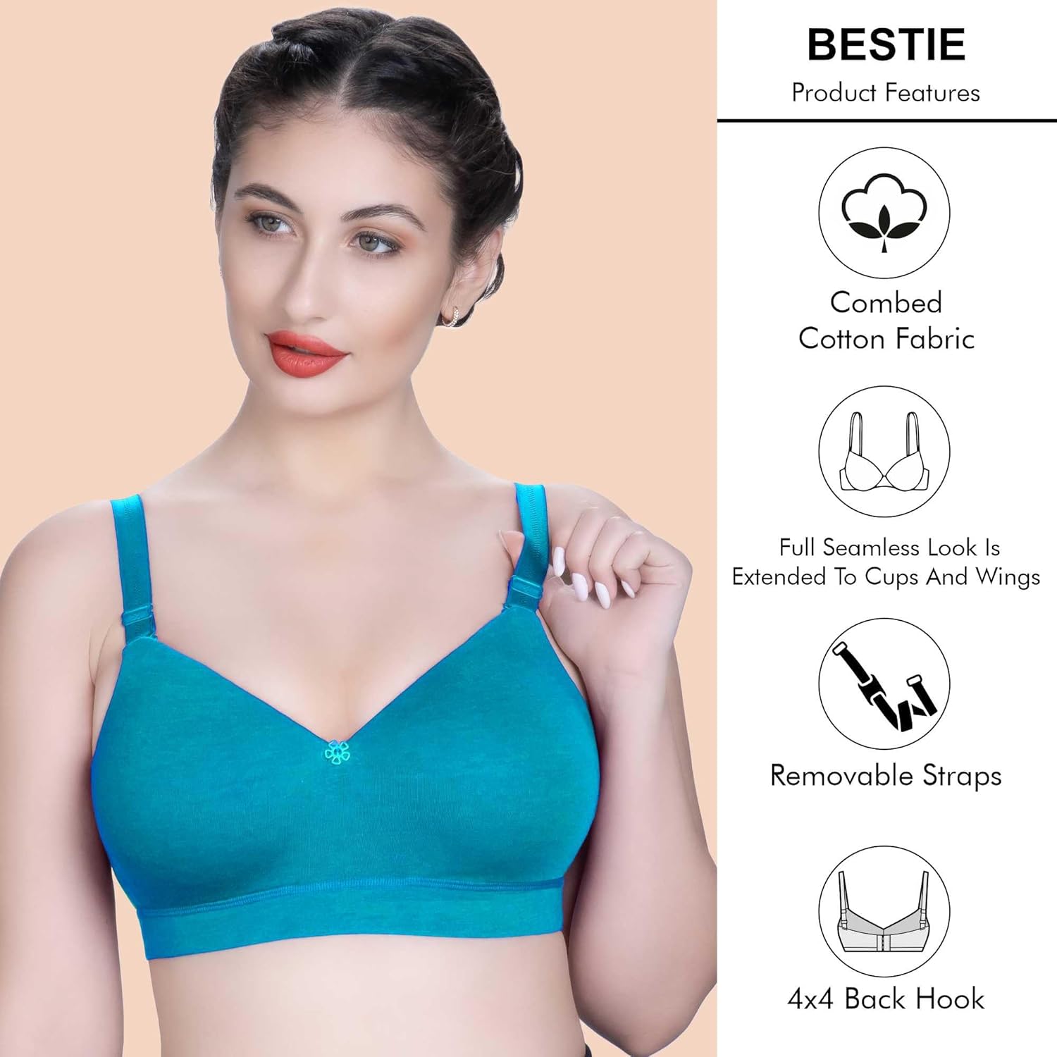 The Riza Bestie is crafted from combed cotton fabric that provides a sweat-free day and utmost comfort. The complete seamless look extends to the cups and wings. The product is well covered with elastic to eliminate itching. The use of ultra-fine and super soft cups gives a comfortable feeling to the fans. Riza Bestie comes with 4 x 4 hook and eye for the perfect hold. This bra is a must have in your wardrobe.