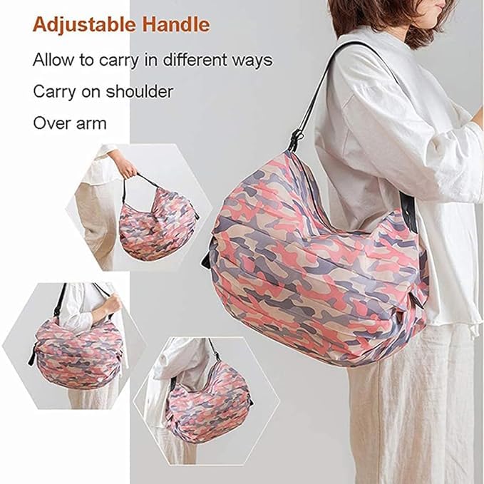 ♦ Our reusable shopping bags with pouch use only pure nylon to craft our standard large shopping bags.