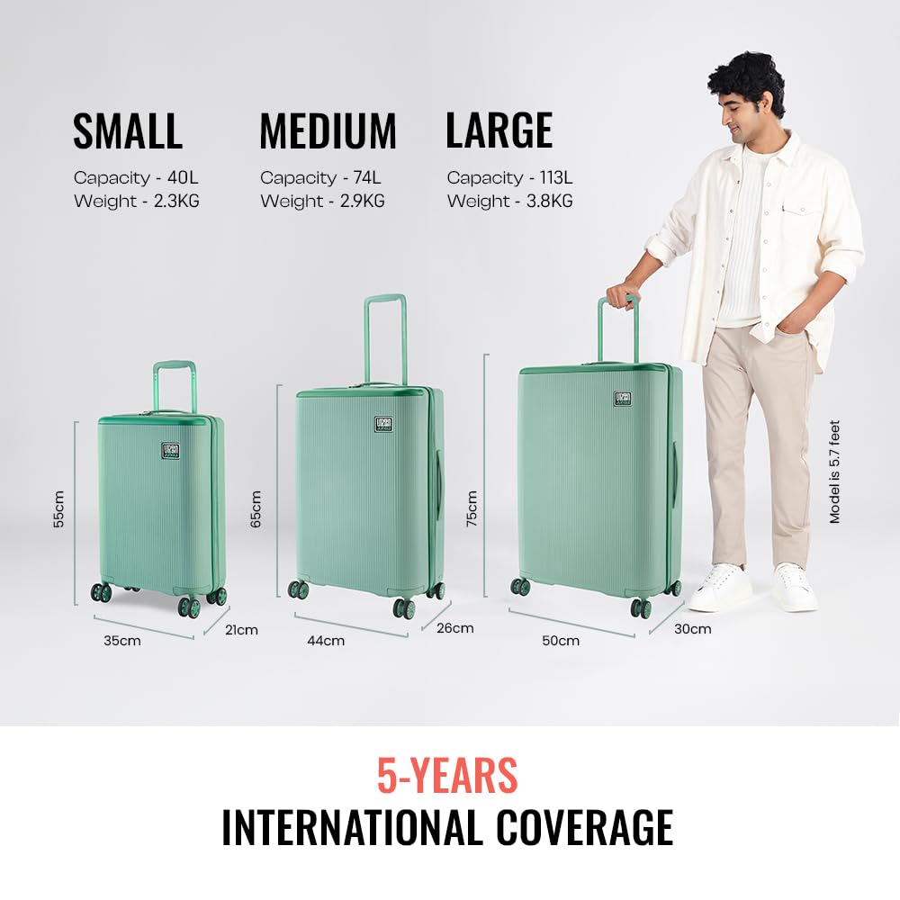 [Our Lightest Luggage Yet] : Our Lumolite range, the first in the industry in 100% polycarbonate, outperforms standard polypropylene options, offering travel up to 25% lighter than previous lines. The hard shell luggage is designed with reinforced grooves for added strength and a brushed texture to prevent scratches. Experience unmatched agility without compromising style or durability.