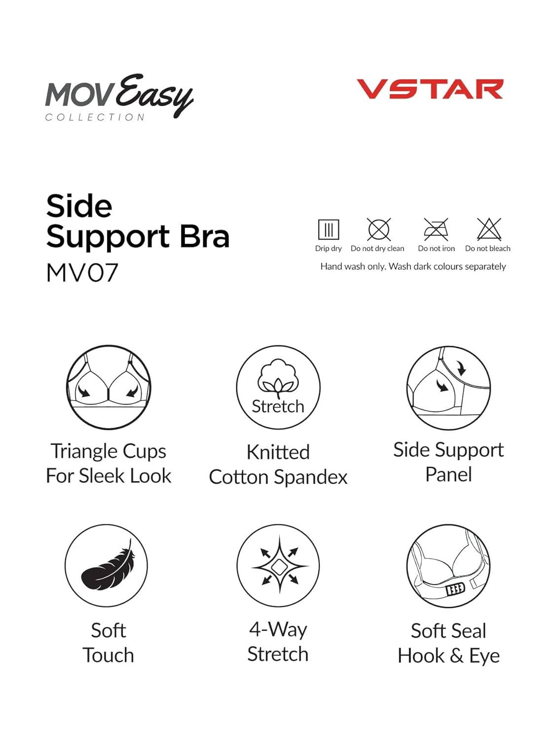 Increase your comfort and confidence with the VStar Padded Side Support Bra, designed for women who want a blend of style and functionality. Crafted from premium cotton elastane stretch fabric, this bra offers a smooth and flexible fit that moves with you. Padded triangle cups provide supple shape and definition, while exclusive side support panels ensure added lift and support for a flattering silhouette. The non-wired design enhances comfort, making it ideal for daily wear. Flexi-grip shoulder straps stay comfortably in place, making adjustments easy. This bra is perfect for women looking for moderate coverage and seamless support that is suitable for both formal and casual attire.